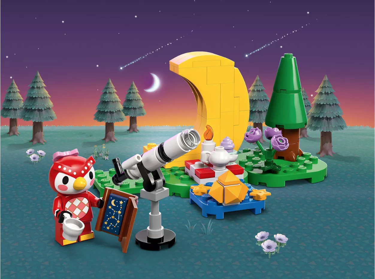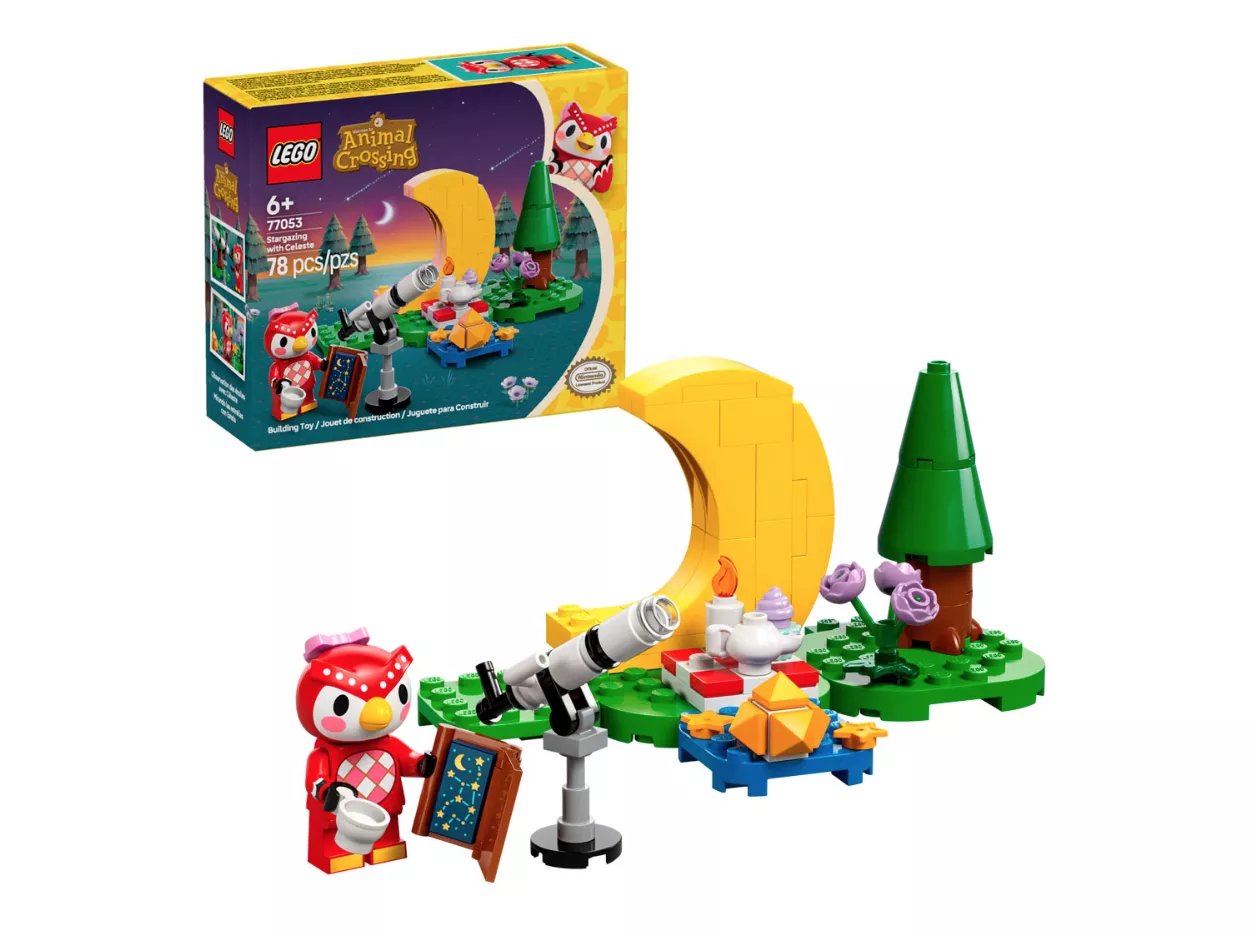 Набор LEGO 77053 «Наблюдение за звёздами с Селестой» из серии Animal Crossing, выпущенный в 2025 году, содержит 78 деталей и 1 минифигурку. В набор входит небольшая сцена на открытом воздухе с телескопом, деревом, элементами для пикника и собранной из кубиков луной. В комплект входит фигурка Селесты, красной совы из Animal Crossing, которая в играх ассоциируется с наблюдением за звёздами.