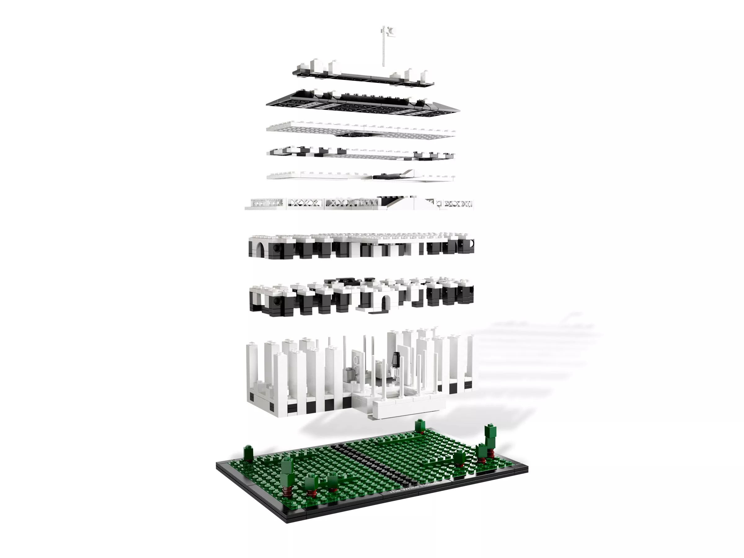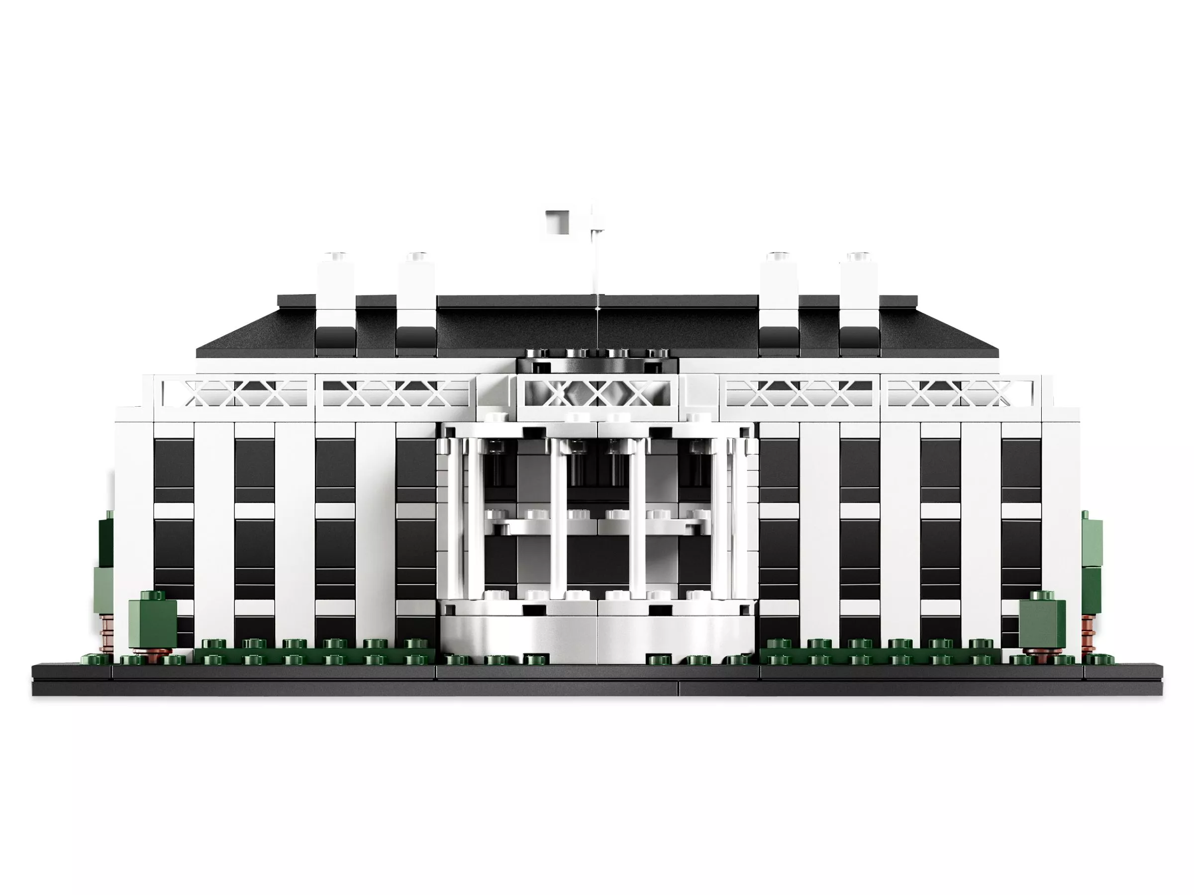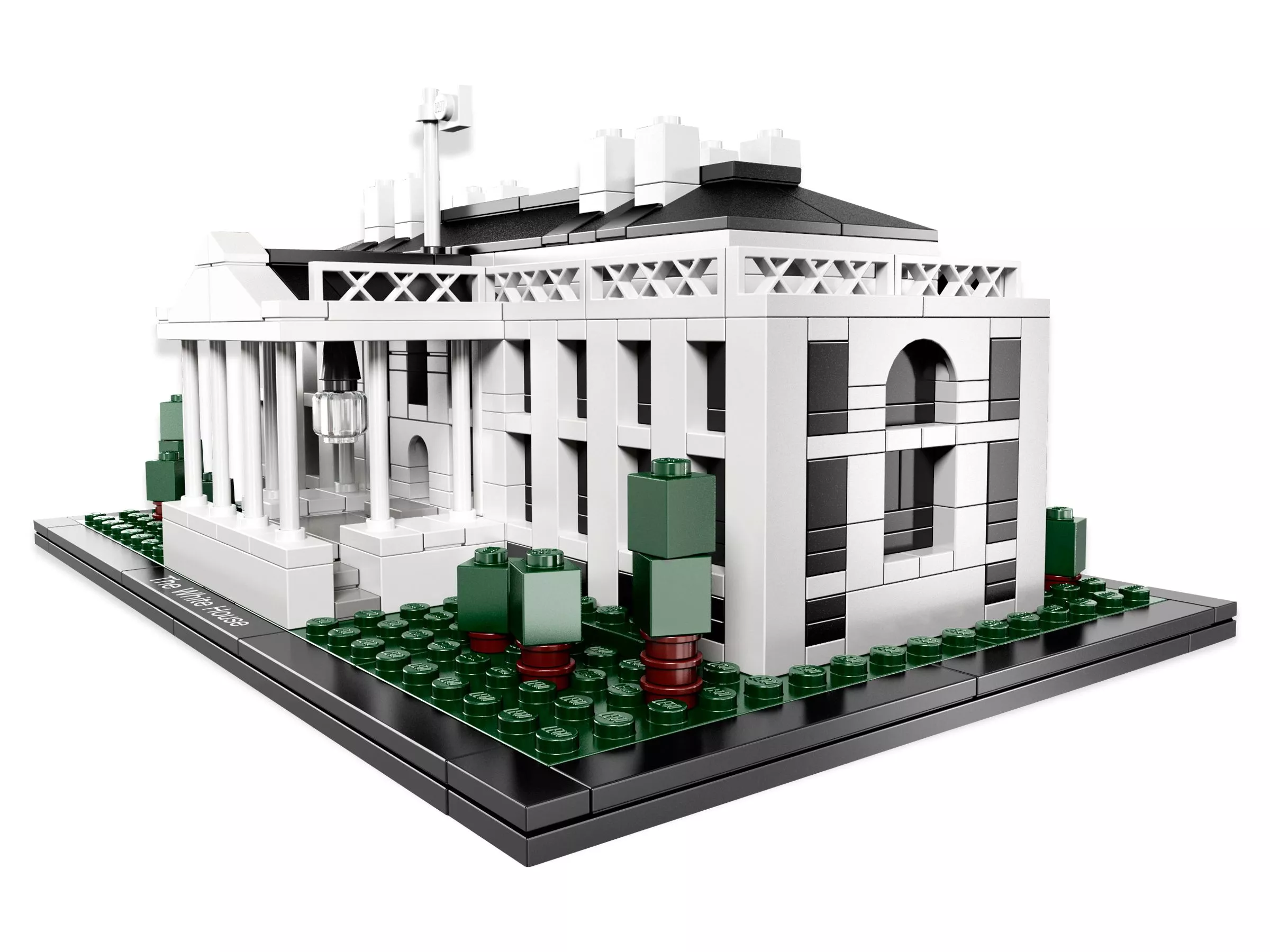 Набор LEGO 21006 «Белый дом» — это архитектурная достопримечательность, выпущенная в 2010 году и содержащая 560 деталей. Модель изображает неоклассическую резиденцию президента в Вашингтоне, округ Колумбия, включая центральный портик и боковые крылья, в масштабе примерно 1:267. В комплект входит плиточное основание с напечатанной табличкой с названием и буклет с историей архитектуры и инструкциями по сборке.