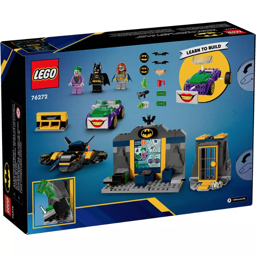 Набор LEGO 76272 «Бэтпещера» — это набор DC Comics Super Heroes 4+, выпущенный в 2024 году, содержащий 184 детали и 3 минифигурки. В него входит компактная модель Бэтпещеры с тюремной комнатой, машинка, которую можно толкать, и летательный аппарат Бэтвинг со складными крыльями. В числе особенностей — пусковая установка для дисков, катапульта с переключателем, взрывающиеся тюремные двери и светящийся в темноте паук. Минифигурки: Бэтмен, Бэтгёрл и Джокер.