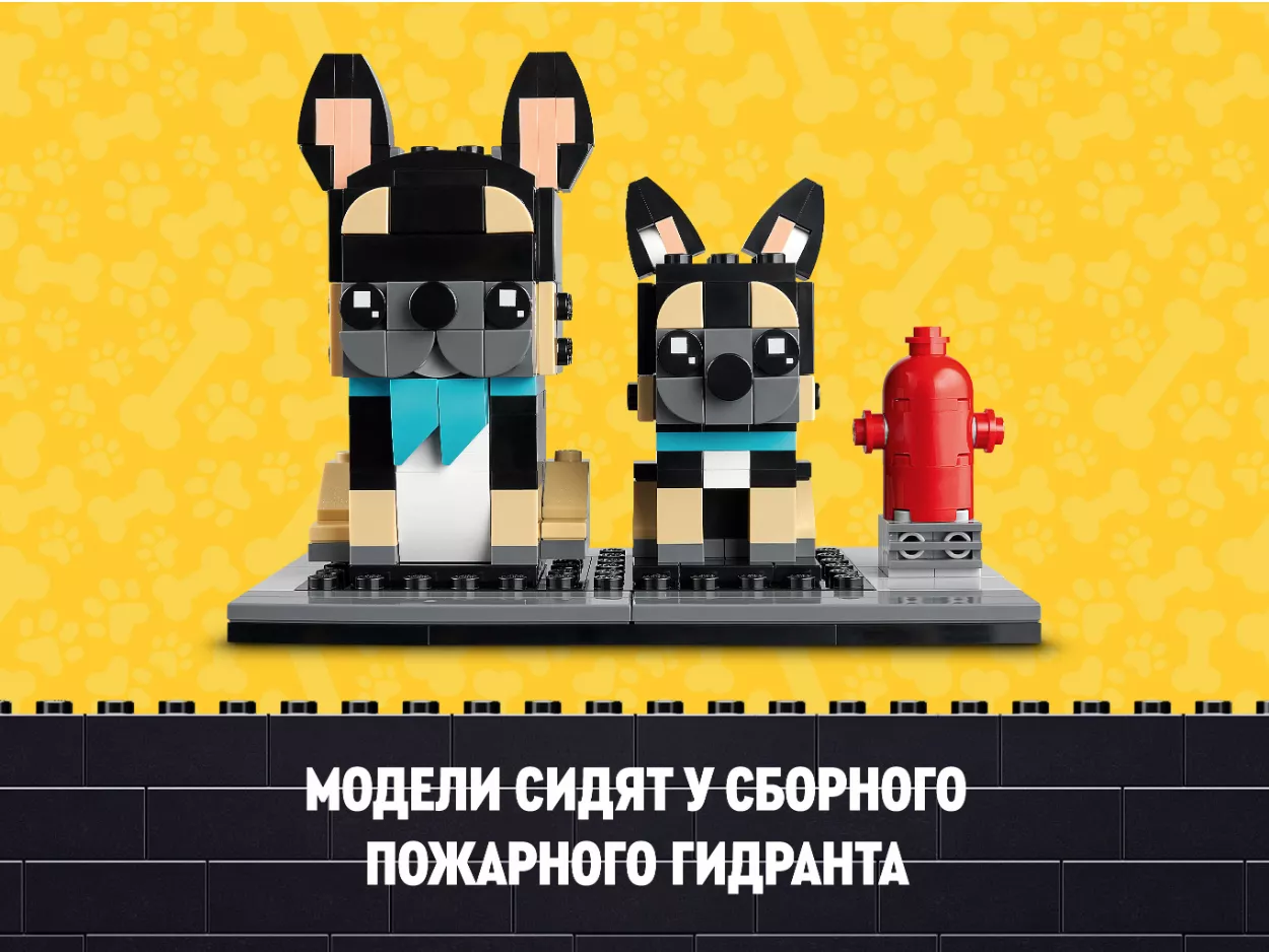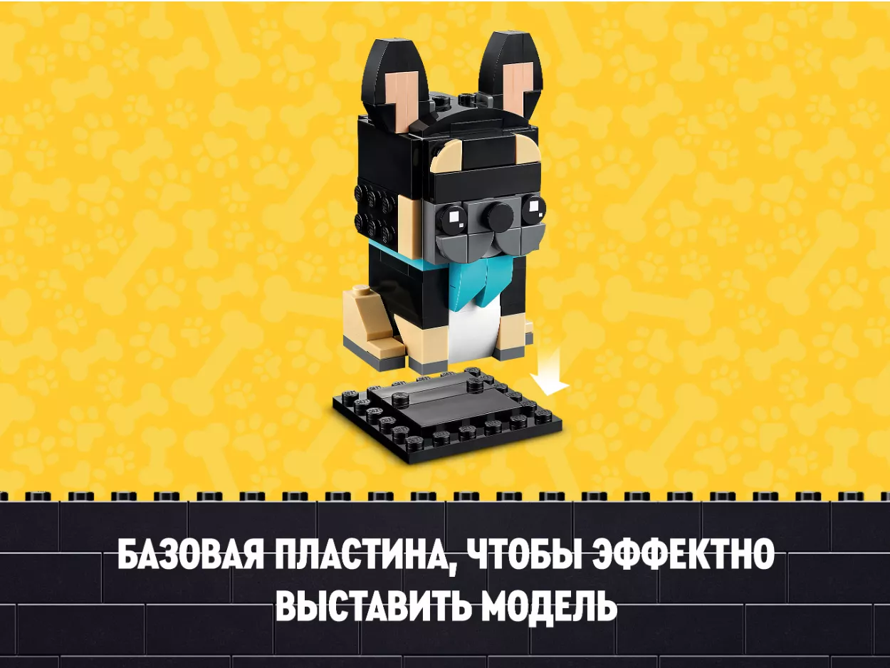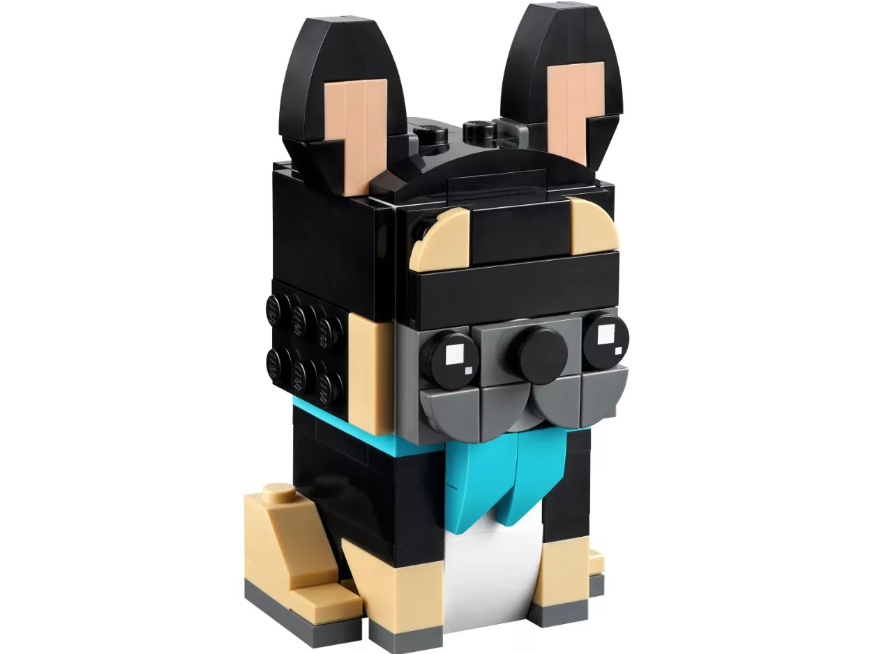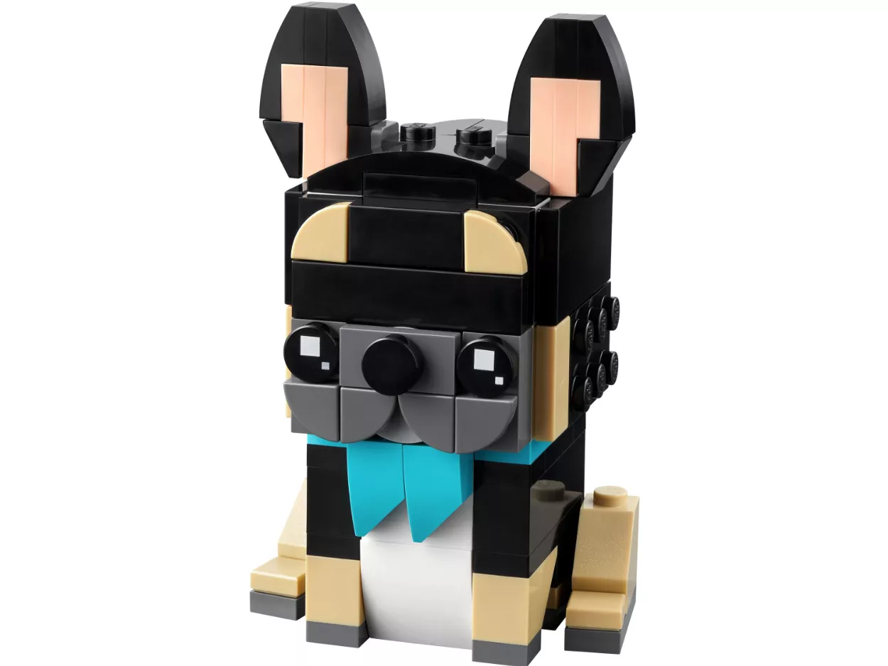 Набор LEGO 40544 «Французский бульдог» из серии BrickHeadz Pets, выпущенный в 2022 году, содержит 237 деталей. В него можно собрать взрослого французского бульдога и щенка, обозначенных номерами BrickHeadz 154 и 155. Модели украшены синими шарфами и подставками, а также небольшим сборным красным пожарным гидрантом.