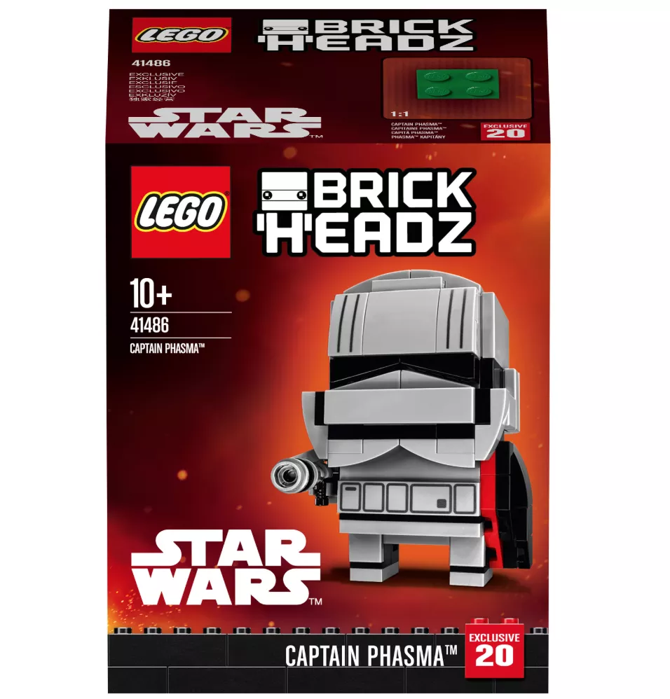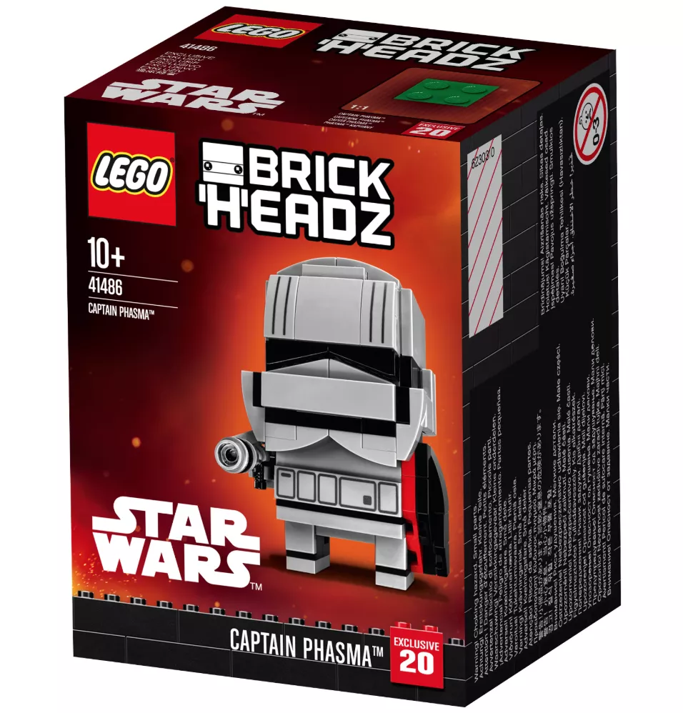Набор LEGO 41486 «Капитан Фазма» — это набор BrickHeadz из 127 деталей, выпущенный в 2017 году. В него входит фигурка Капитана Фазмы в броне штурмовика, шлеме, сборном плаще, съемном бластерном пистолете и подставке с иконкой BrickHeadz.