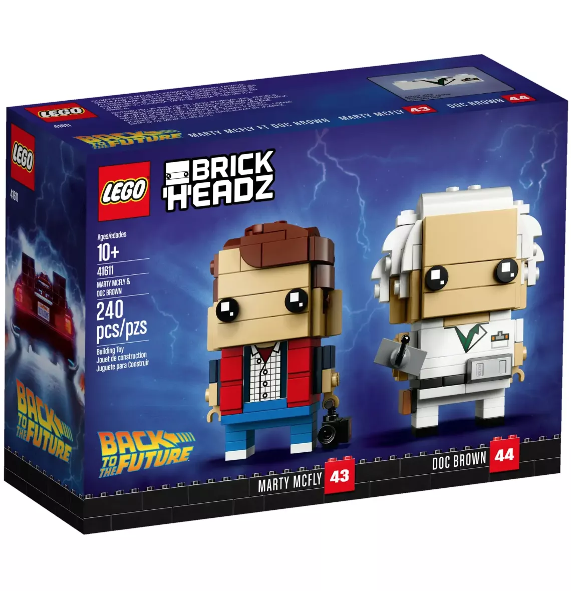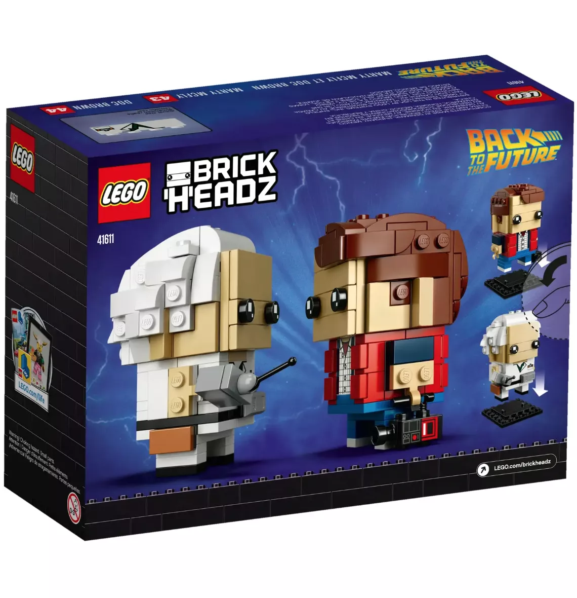 Набор LEGO 41611 «Марти Макфлай и Док Браун» — это набор Brickheadz из 240 деталей, выпущенный в 2018 году. В него входят два персонажа Brickheadz: Марти Макфлай в красном пуховом жилете со съемной видеокамерой и Док Браун в белом комбинезоне со съемным контроллером машины времени DeLorean.