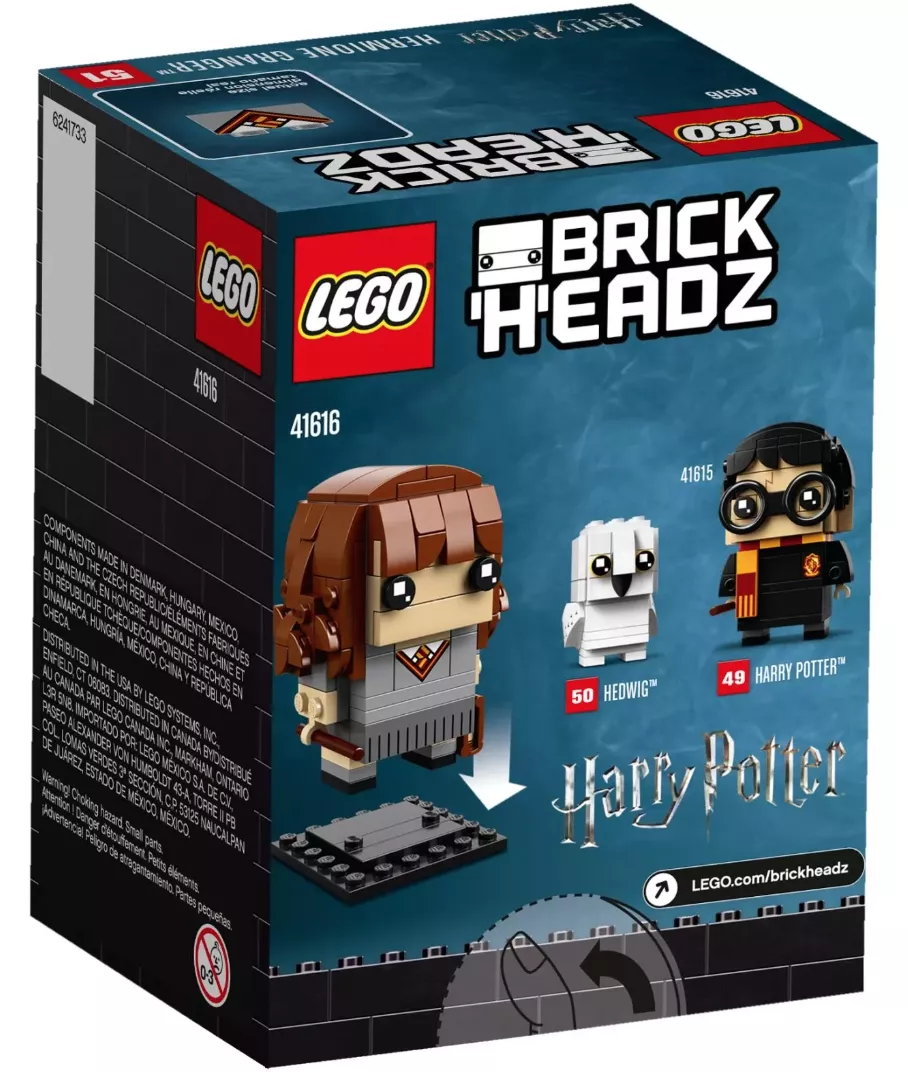 Набор LEGO 41616 «Гермиона Грейнджер» от BrickHeadz, состоящий из 127 деталей, был выпущен в 2018 году. В него входит фигурка Гермионы Грейнджер от BrickHeadz с пышными каштановыми волосами, галстуком Хогвартса, съемной книгой заклинаний и волшебной палочкой.