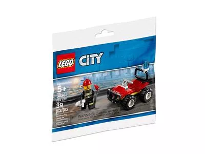 Набор LEGO 30361 «Пожарный квадроцикл» — это городской набор из 39 деталей с 1 минифигуркой, выпущенный в 2019 году. В него входит небольшой багги с черными шинами, красным капотом, светло-серым рулем, синими фарами и минифигурка пожарного с сиреной и красным топориком. Этот набор также был бесплатным рекламным товаром в магазинах LEGO и на сайте LEGO.com при совершении соответствующих покупок.