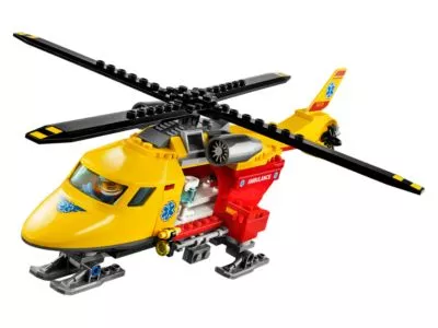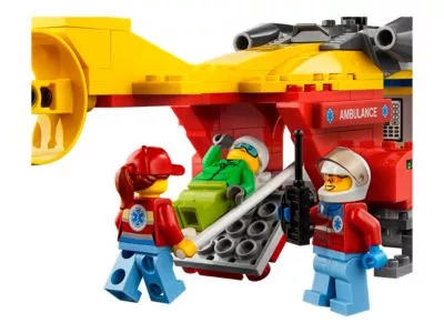 Набор LEGO 60179 «Вертолет скорой помощи» — это городской набор из 190 деталей с 3 минифигурками, выпущенный в 2018 году. В него входит красно-желтый вертолет скорой помощи с вращающимися лопастями, шасси, задним люком и местом для носилок, а также сноуборд и рация. В набор входят три минифигурки: пилот, врач и сноубордист.