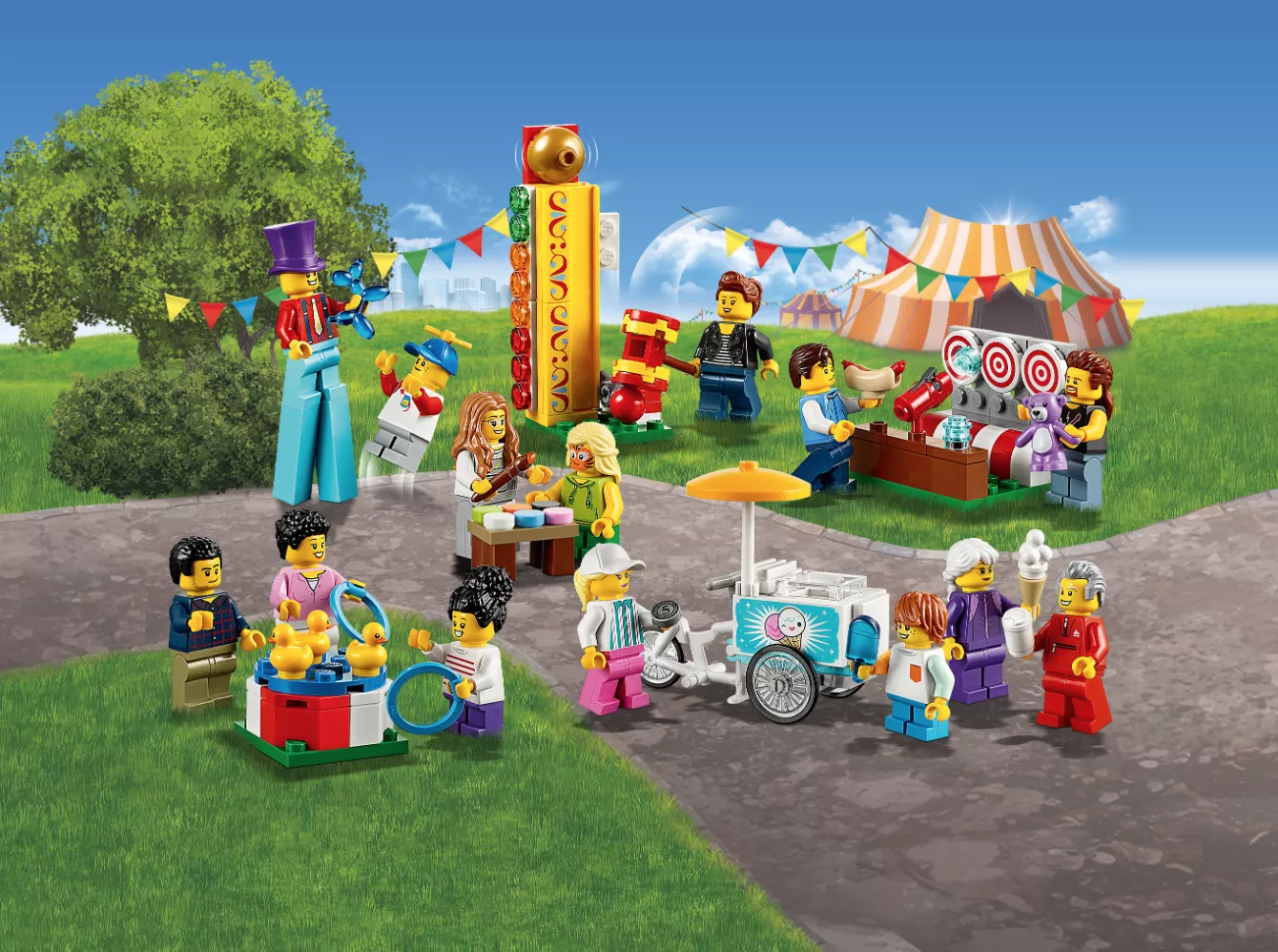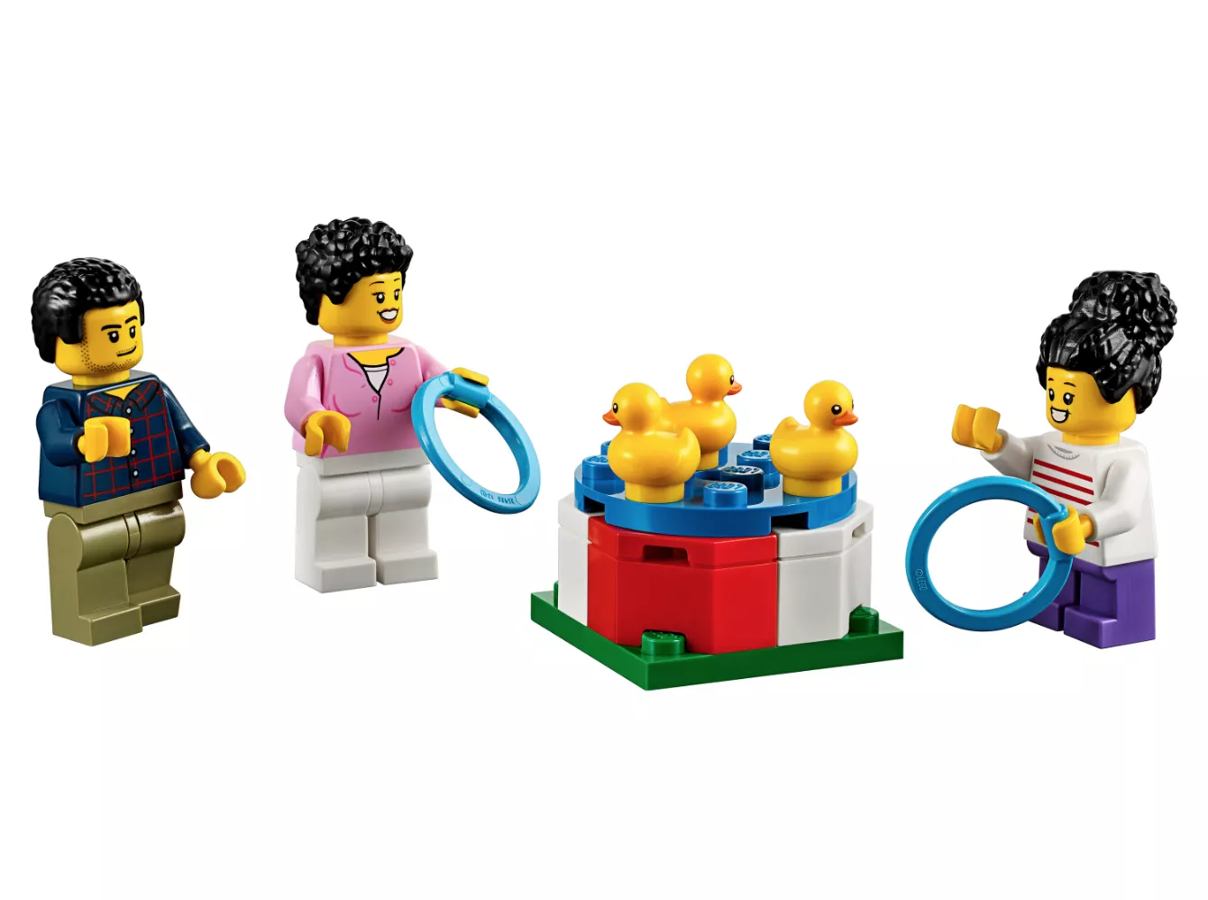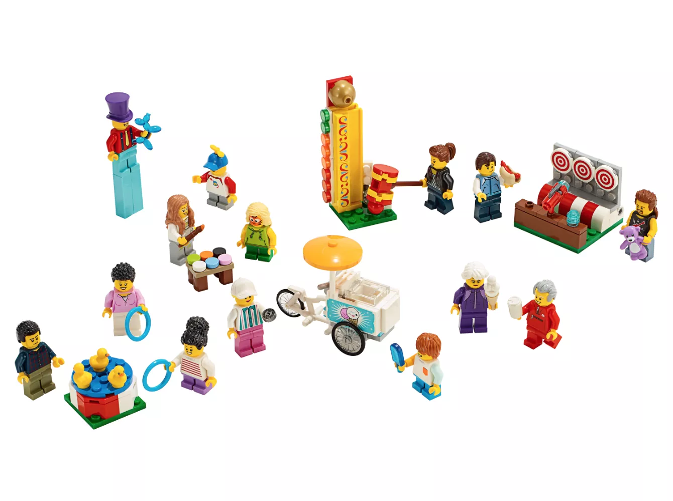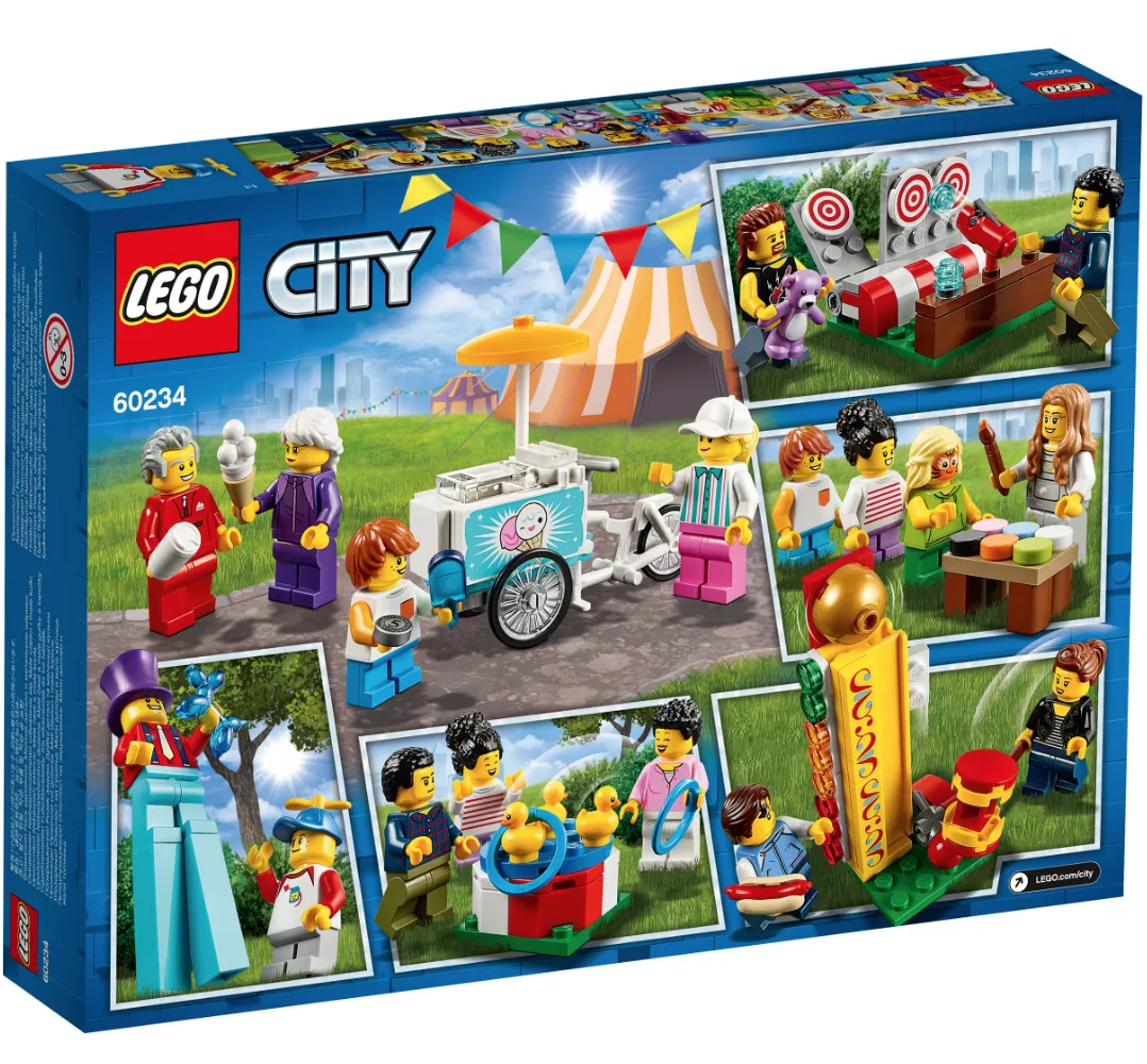 Набор LEGO 60234 «Ярмарка развлечений для людей» — это городской набор из 183 деталей с 14 минифигурками, выпущенный в 2019 году. Он включает в себя тир, стол для аквагрима, игру в кольцеброс «Утка в бассейне», тест на силу, грузовой велосипед для мороженого, а также такие элементы, как резиновые уточки, кольца, шляпа-вертушка, рожок мороженого и кисточка.