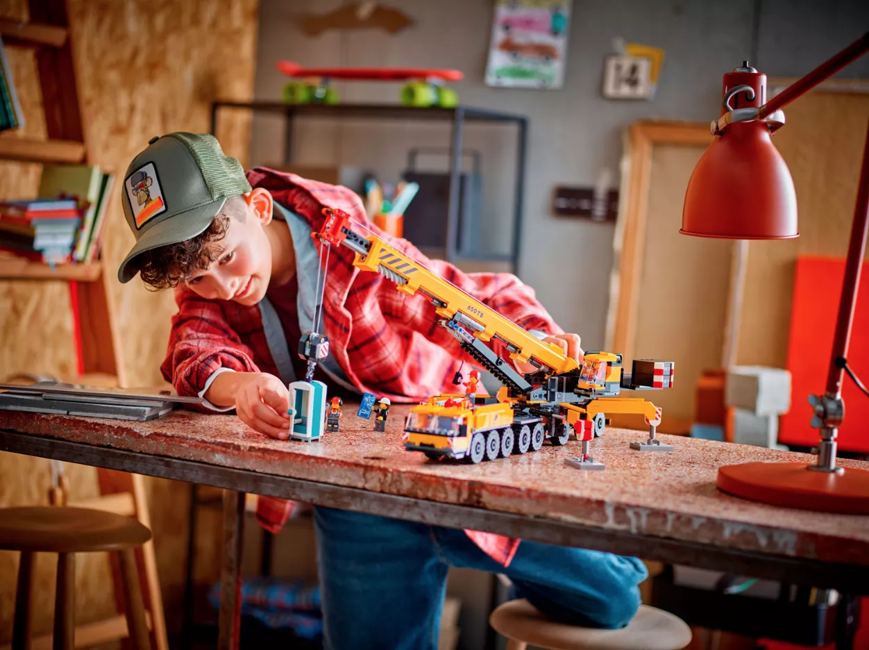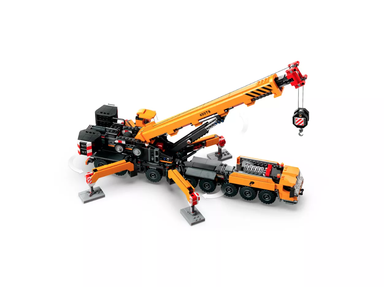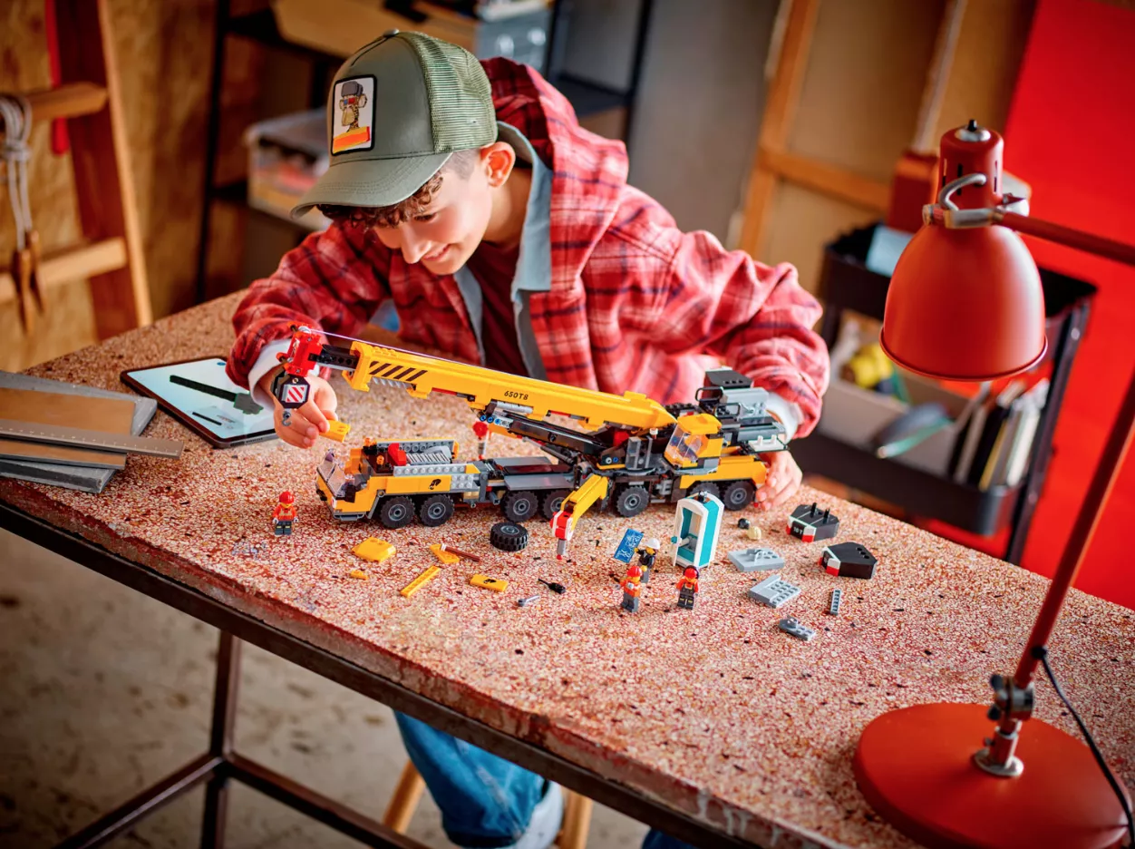 Набор LEGO 60409 «Передвижной строительный кран» — это городской набор из 1116 деталей с 4 минифигурками, выпущенный в 2024 году. В него входит желтый передвижной строительный кран со складными опорными ножками, поворотной кабиной, выдвижной и вращающейся на 360 градусов стрелой и функциональным подъемником, а также 4 минифигурки рабочих.