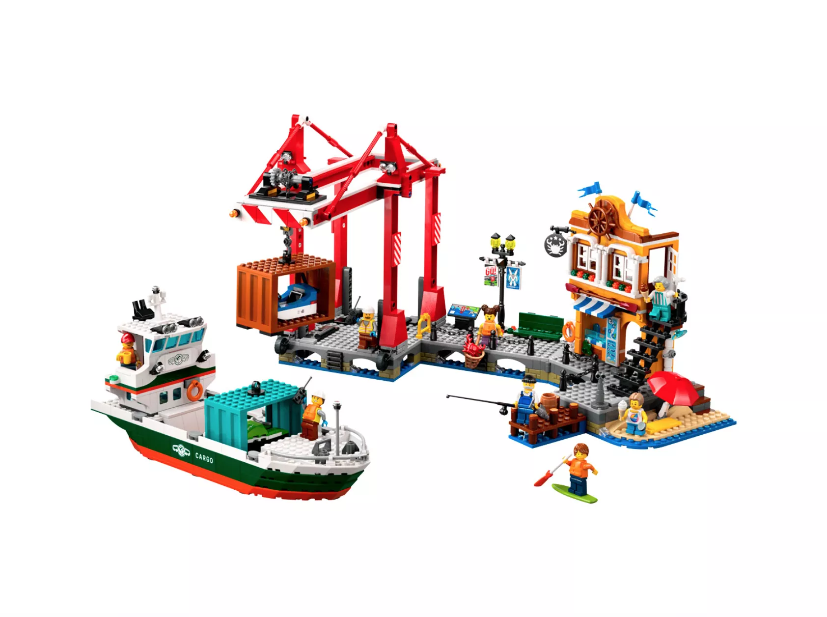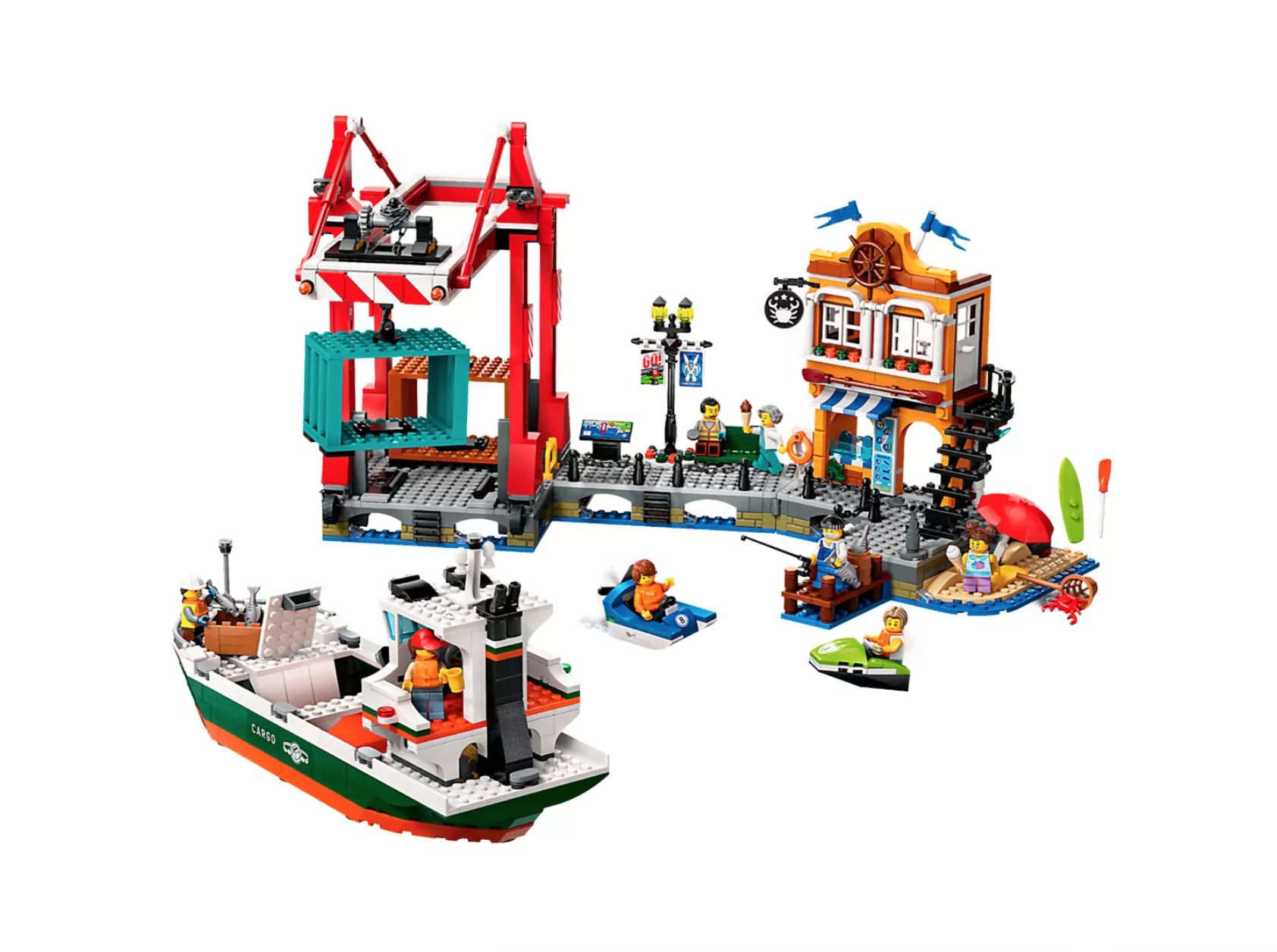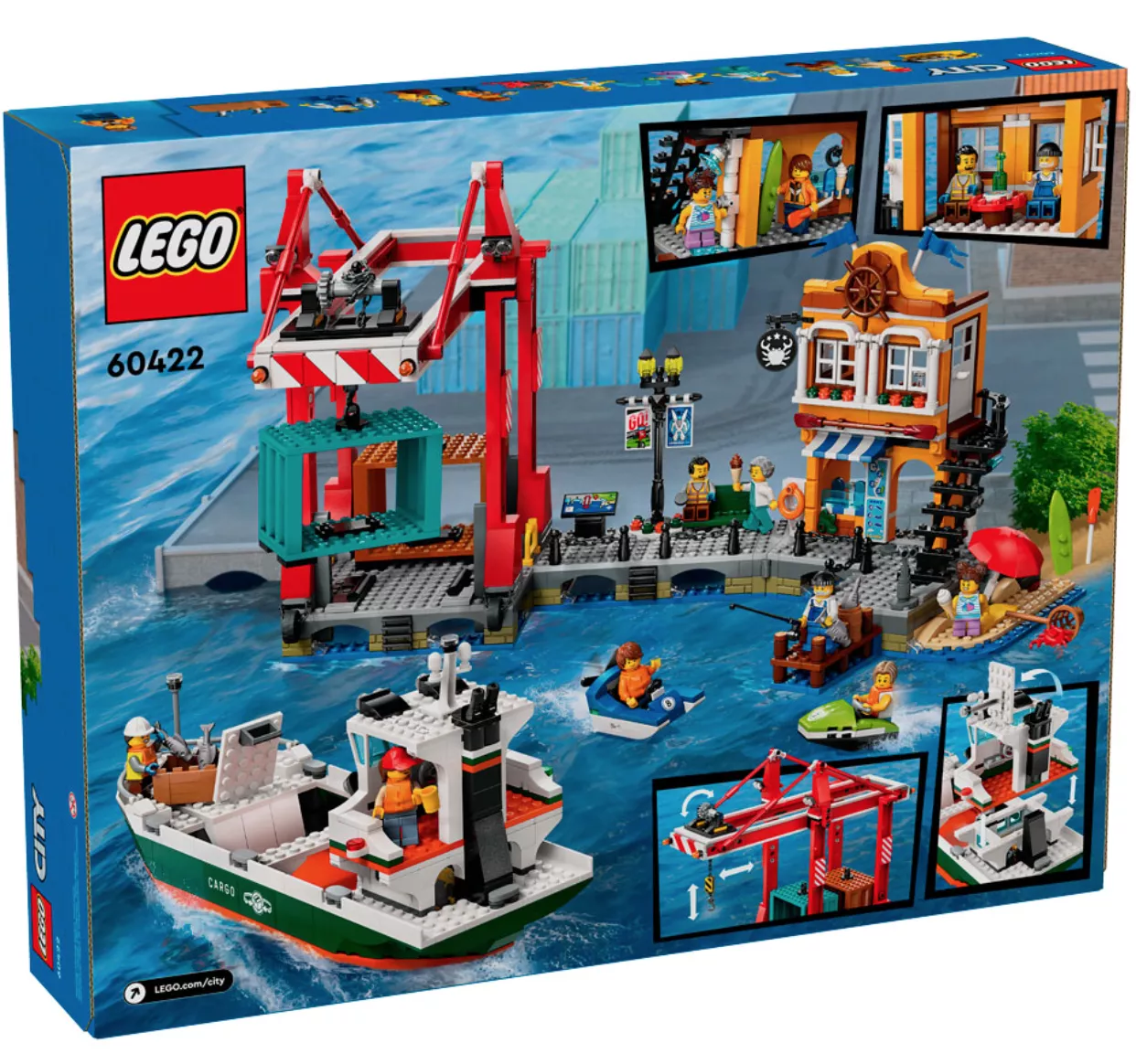 Набор LEGO 60422 «Порт» — это городской набор из 1226 деталей с 8 минифигурками, выпущенный в 2024 году. Он изображает приморский порт с грузовым судном, краном для подъема контейнеров, туристической зоной с магазином, рестораном морепродуктов и пляжем. Включает две лодки, водный скутер и восемь минифигурок. В комплекте также забавные аксессуары, такие как удочка и сачок для ловли крабов.