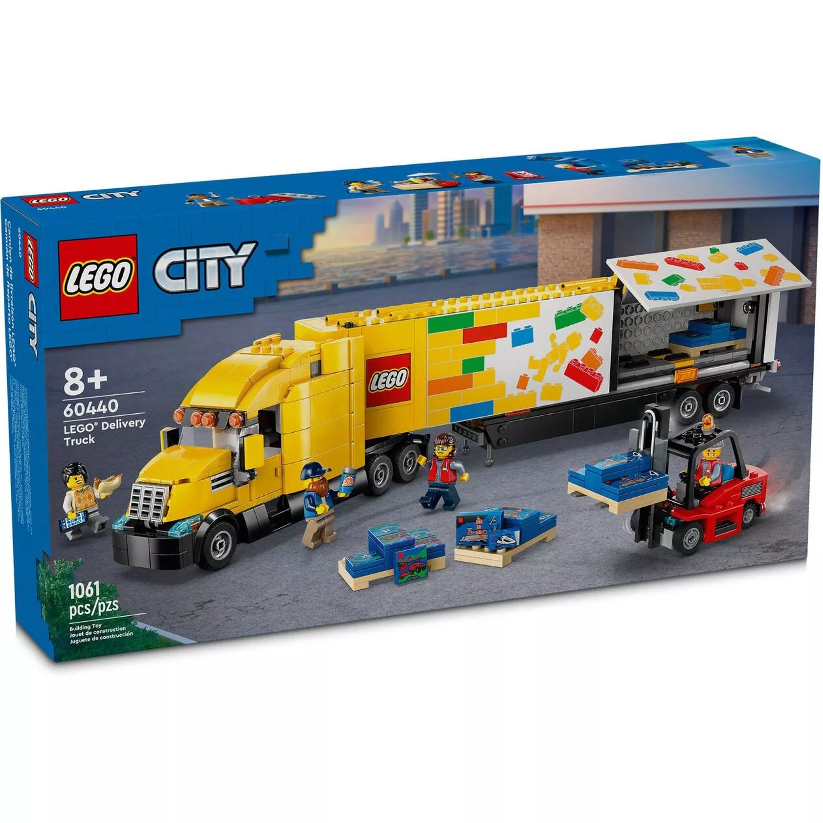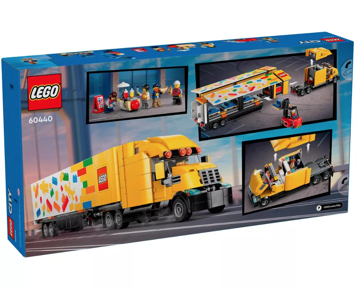 Набор LEGO 60440 «Грузовик доставки» из серии City Traffic, выпущенный в 2024 году, содержит 1061 деталь и 4 минифигурки. Он позволяет собрать желтый грузовик дальнего следования со спальной кабиной и большим прицепом, а также работающий погрузчик, поддоны с игровыми наборами LEGO и небольшой киоск с хот-догами. В центре внимания — погрузка и доставка грузов с помощью погрузчика, перемещающего грузы на поддонах. В обновленном формате он переосмысливает концепцию набора LEGO City Truck (3221) 2010 года.