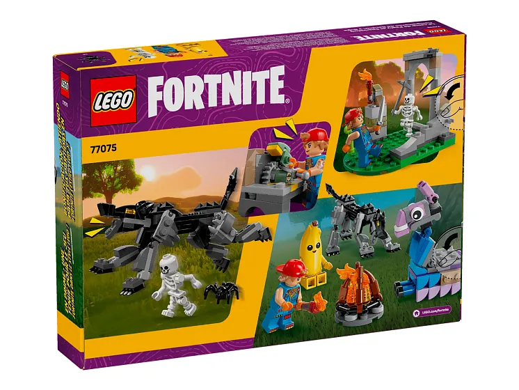 Набор LEGO 77075 «Лагерь Пилли и Спаркплага» — это набор по мотивам игры Fortnite, состоящий из 250 деталей и включающий 3 минифигурки, выпущенный в 2025 году. В него входят сборный костер, верстак и руины, которые можно перестраивать, а также фигурки Пилли, Спаркплага, скелета, ламы-снаряжения и волка с подвижными конечностями, плюс различное оружие, вдохновленное игрой.