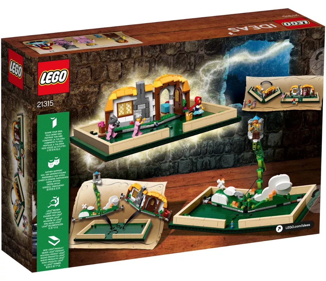 Набор LEGO 21315 «Книга-раскладушка» — это набор Ideas, выпущенный в 2018 году и состоящий из 859 деталей. Он представляет собой книгу из кубиков, которая открывается, демонстрируя объемные сцены со сменными элементами, например, лесной домик Красной Шапочки и замок Джека и бобового стебля в облаках. В набор входят минифигурки Красной Шапочки, Бабушки, Волка и Великана, а также микромасштабные элементы для Джека и бобового стебля. Выпущенный под номером 23 в серии LEGO Ideas, он основан на фанатском дизайне книги-раскладушки от JKBrickworks.