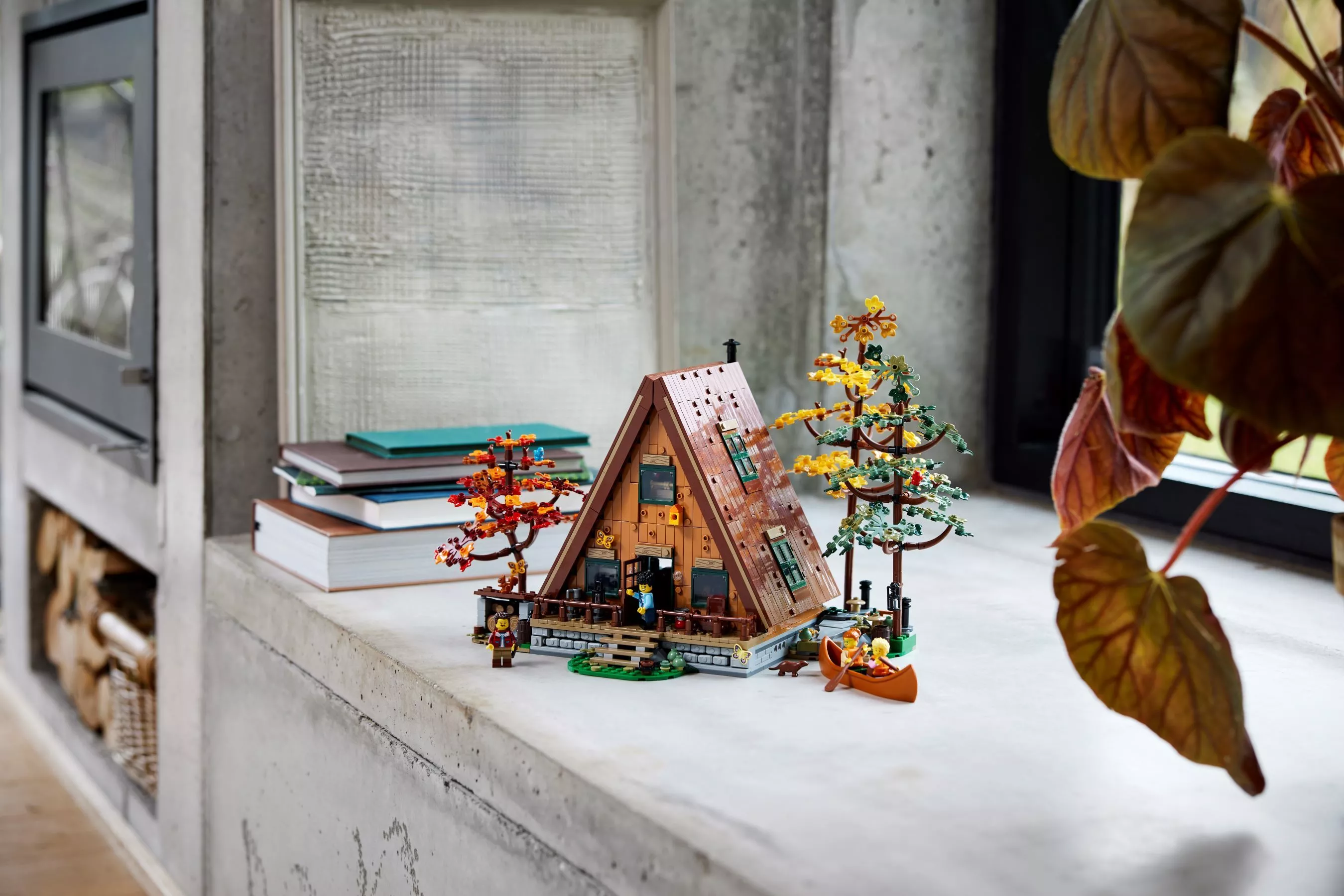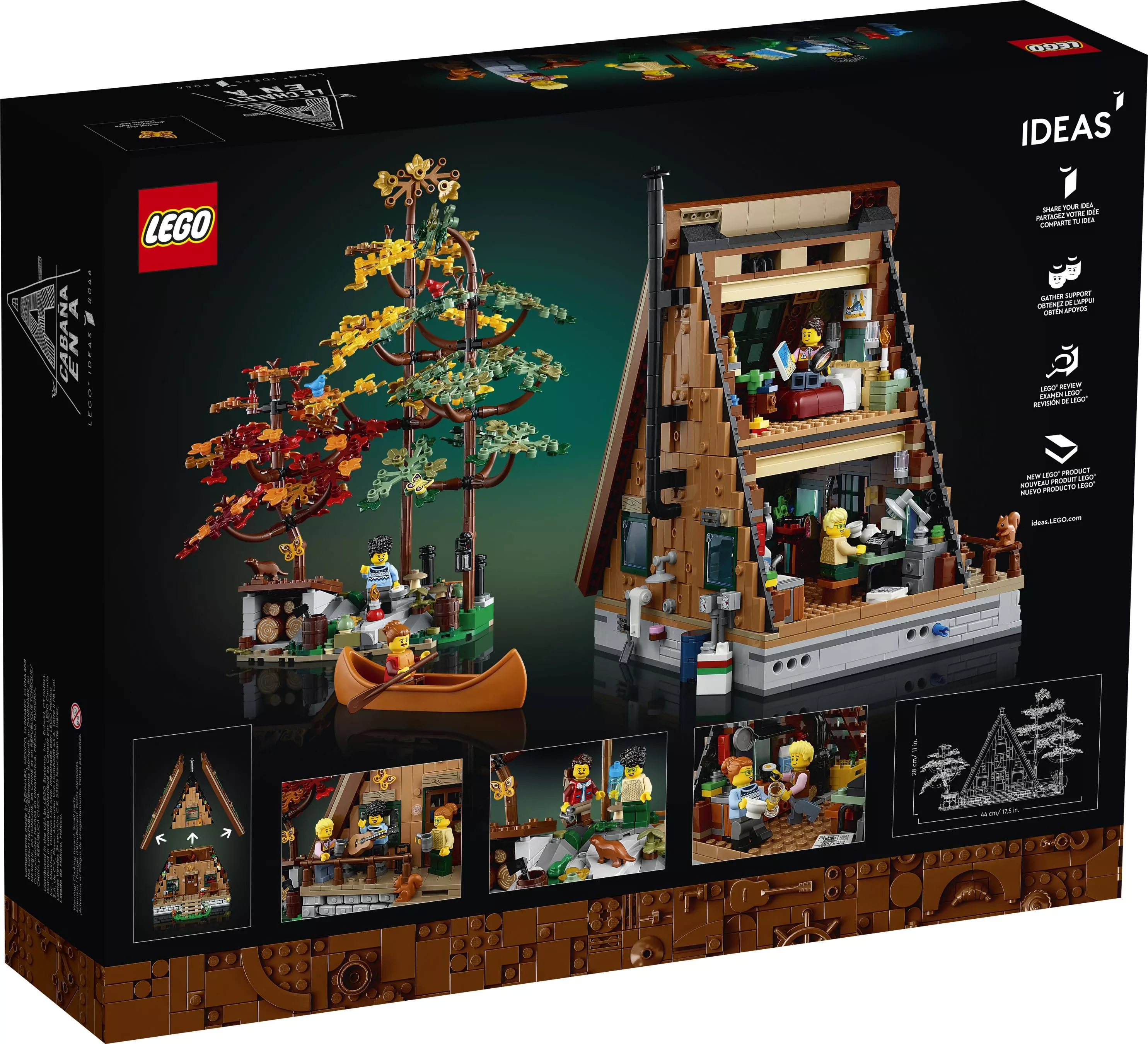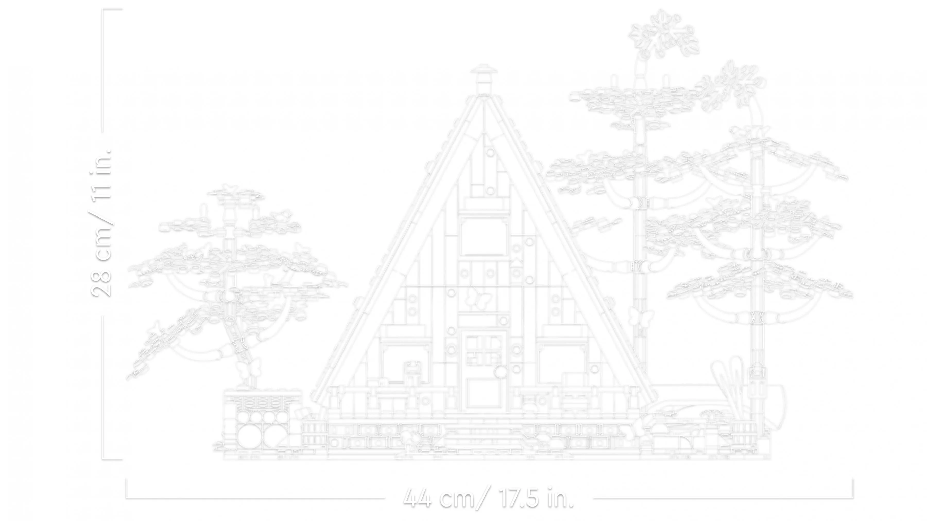 Набор LEGO 21338 «Домик А-образной формы» — это набор Ideas из 2082 деталей с 4 минифигурками, выпущенный в 2023 году. Он включает в себя разборный домик А-образной формы с детализированным интерьером, в том числе спальней, гостиной, кабинетом и мини-кухней. В комплект также входят три дерева, каноэ, 2 мотылька, 2 бабочки, 2 лягушки, 2 птицы, выдра, паук и белка.