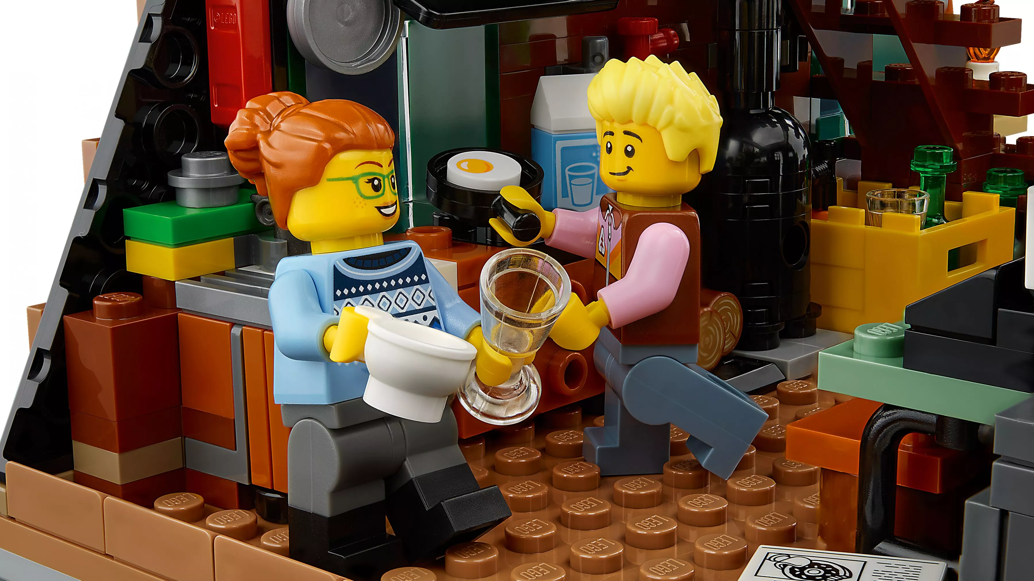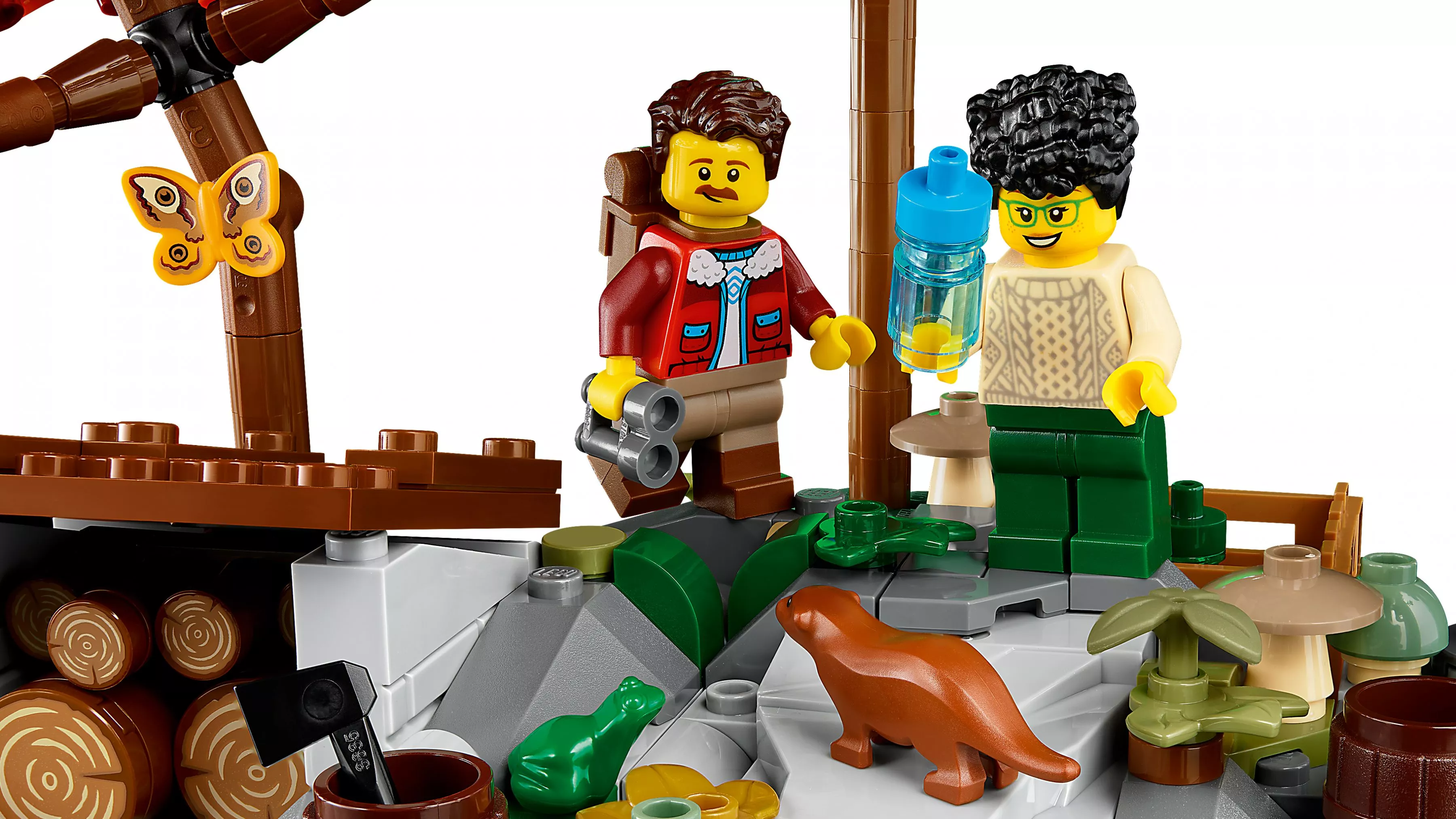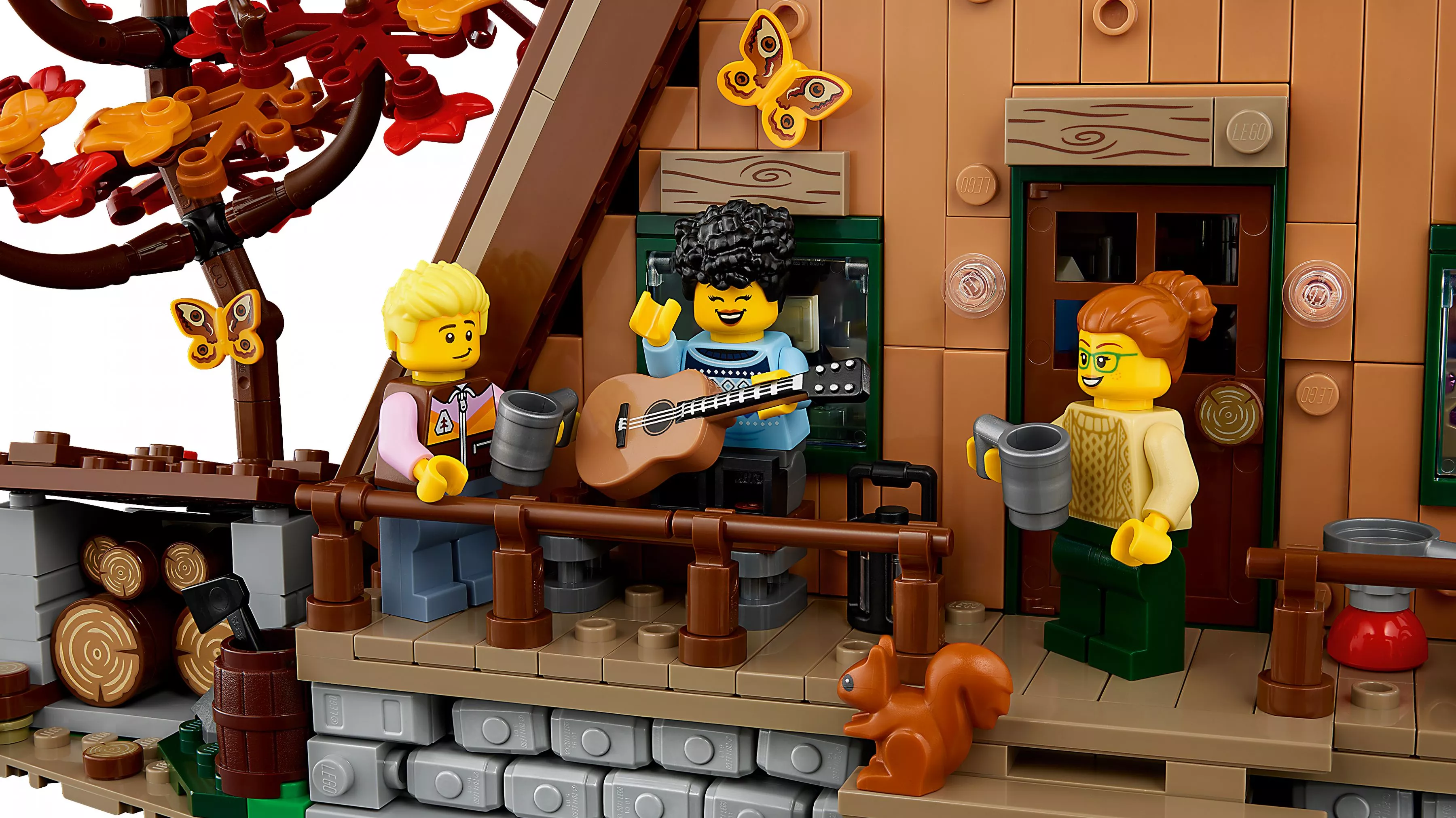 Набор LEGO 21338 «Домик А-образной формы» — это набор Ideas из 2082 деталей с 4 минифигурками, выпущенный в 2023 году. Он включает в себя разборный домик А-образной формы с детализированным интерьером, в том числе спальней, гостиной, кабинетом и мини-кухней. В комплект также входят три дерева, каноэ, 2 мотылька, 2 бабочки, 2 лягушки, 2 птицы, выдра, паук и белка.