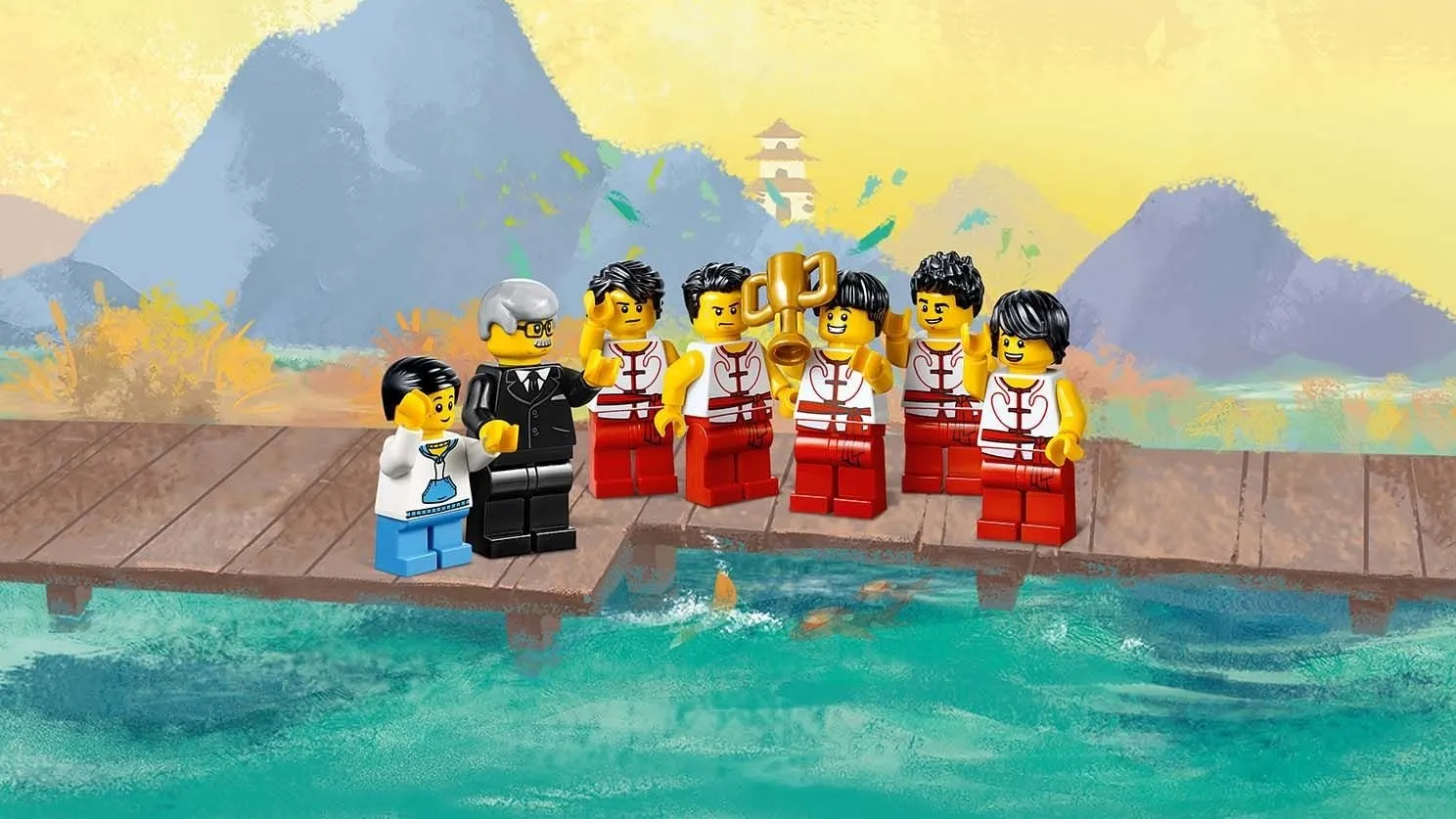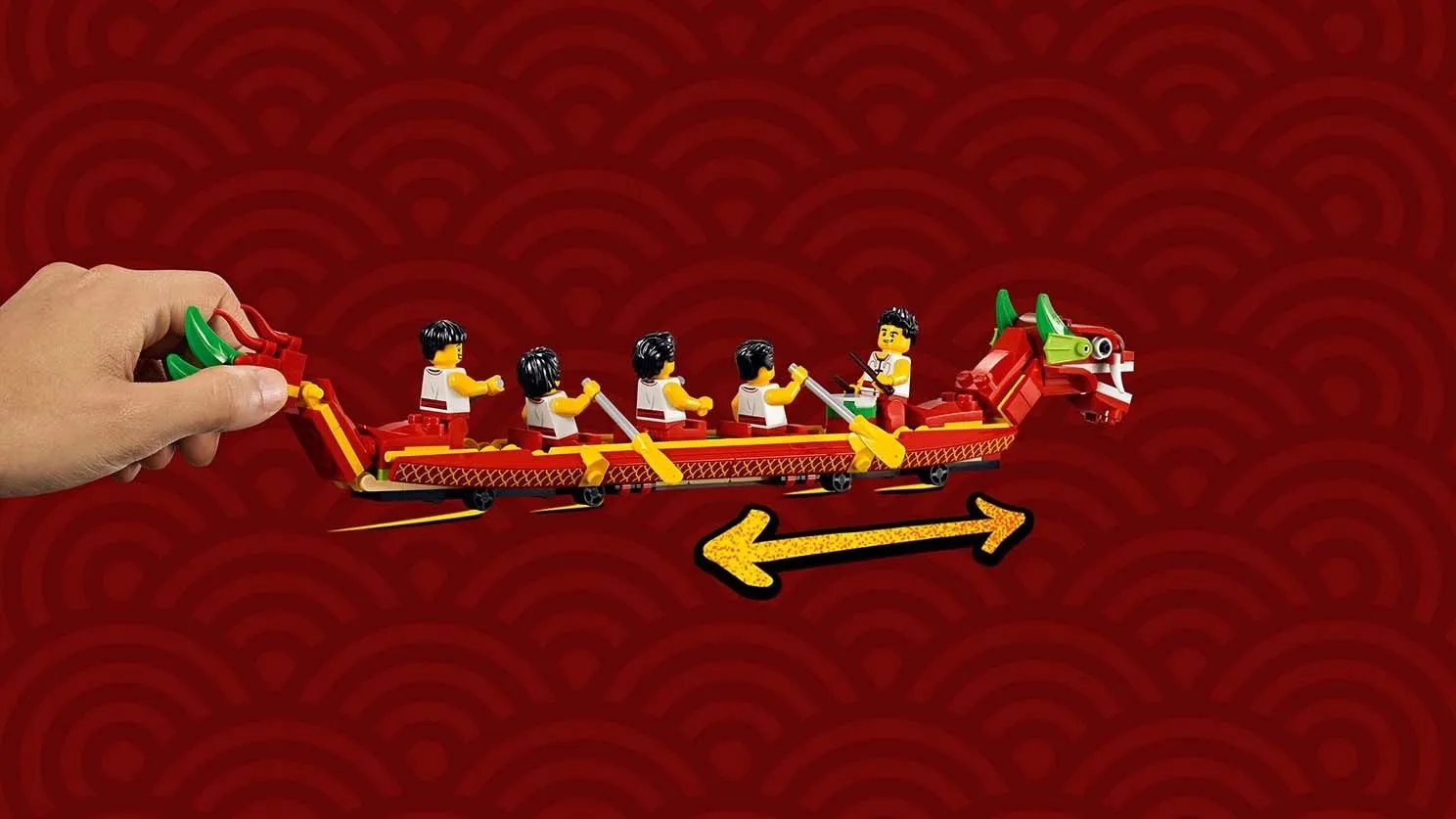 Набор LEGO 80103 «Гонка на лодках-драконах» — это сезонный набор из 643 деталей с 15 минифигурками, выпущенный в 2019 году. В него входят две лодки-дракона с открывающимися пастями и подвижными хвостами, пристань с киоском с едой, зона для зрителей, судейская трибуна, сборные финишные столбики, а также минифигурки с такими предметами, как весла и барабаны.