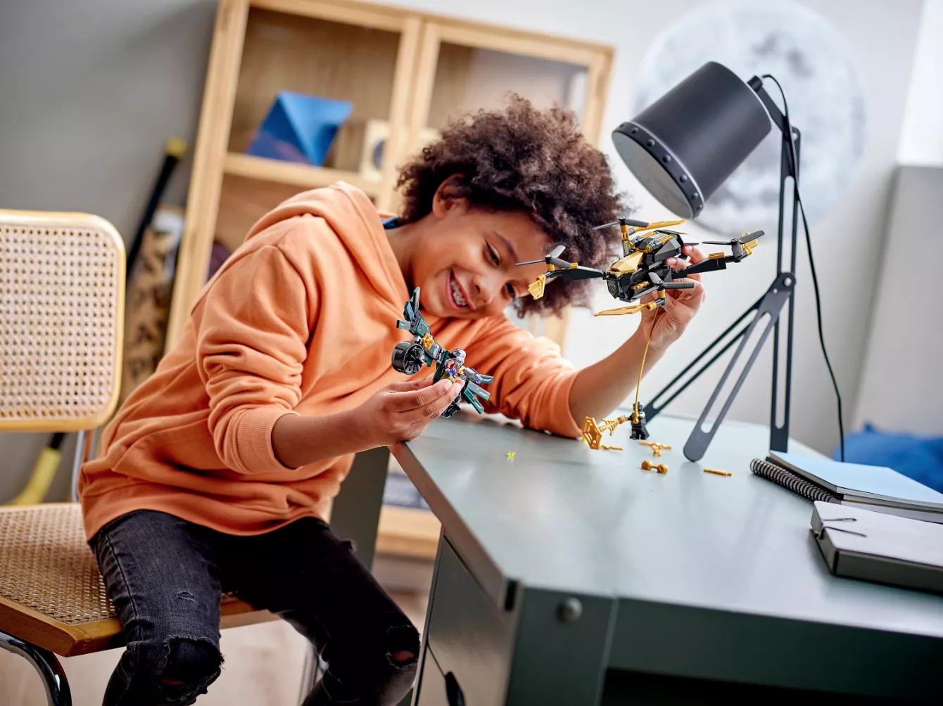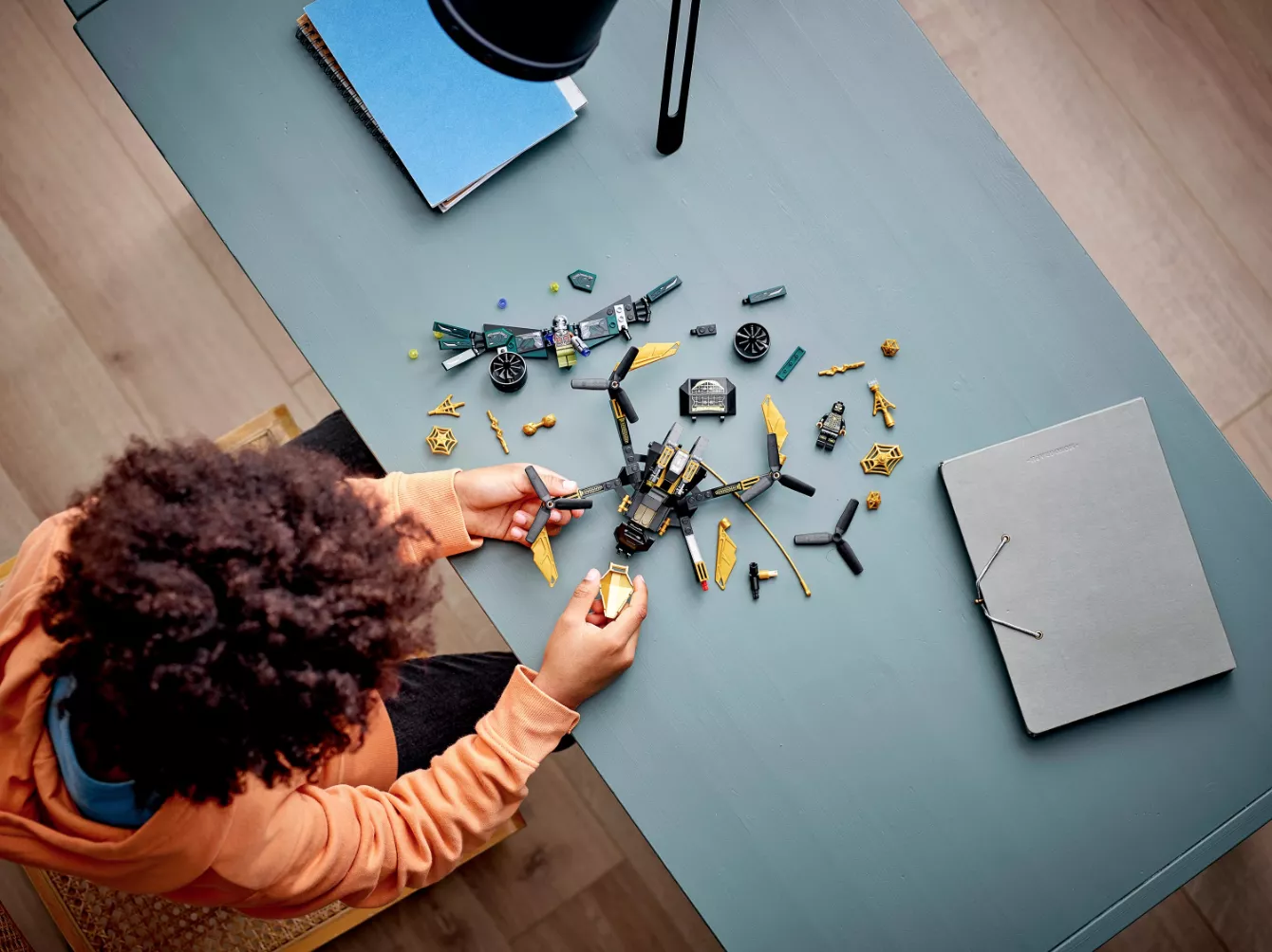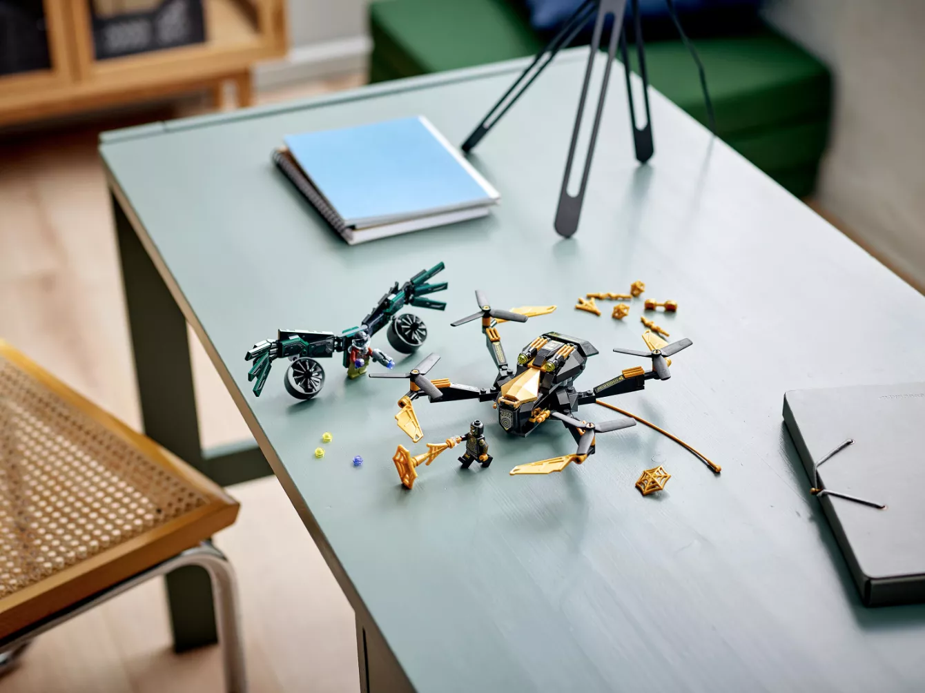 Набор LEGO 76195 «Дуэль дронов Человека-паука» — это набор из 198 деталей, посвященный супергероям Marvel, с двумя минифигурками, выпущенный в 2021 году. В него входят две минифигурки: Человек-паук и Стервятник. Набор состоит из сборного дрона с четырьмя роторами и двумя шипометами. Он создан по мотивам фильма «Человек-паук: Возвращение домой».
