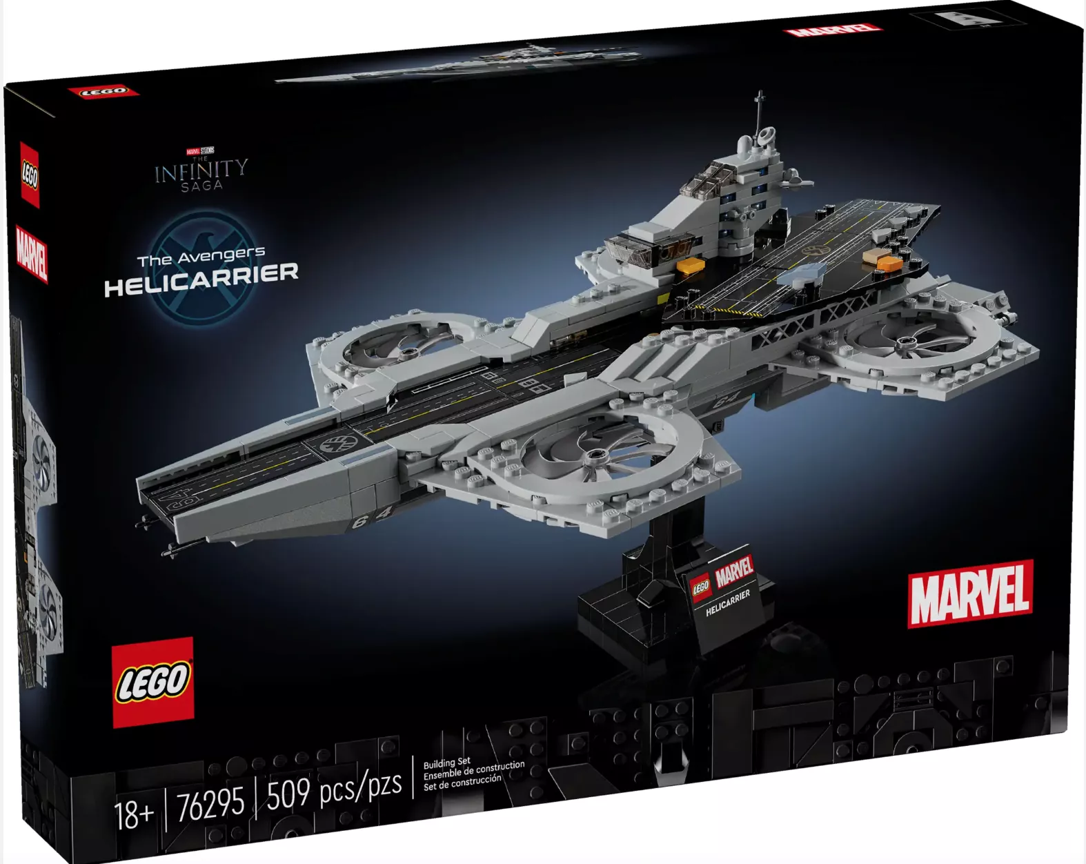 LEGO 76295 «Вертолётоносец Мстителей» — это набор из серии Marvel Super Heroes The Avengers, выпущенный в 2024 году и содержащий 509 деталей. Модель представляет собой компактную, среднего масштаба копию воздушного командного авианосца Щ.И.Л.Д., показанного в фильмах Marvel Studios «Мстители» и «Мстители: Эра Альтрона». Она включает в себя детализированную палубу с квинджетами, видимыми на взлетно-посадочной полосе, и предназначена для демонстрации. Размеры собранного вертолетоносца составляют приблизительно 18 см в высоту, 33 см в длину и 22 см в ширину.