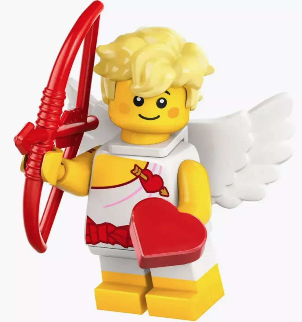 Набор LEGO 71048-9 «Купидон» — коллекционный набор серии 27, выпущенный в 2025 году и состоящий из 3 деталей и 1 минифигурки. Фигурка изображает мифического лучника. Эта фигурка идеально подходит для праздников Дня святого Валентина и воплощает классический символ любви. Она ассоциируется с любовью и включает в себя аксессуар в виде красного банта. Фигурка дополнена уникальным накладным волосом и принтами на туловище и ногах, вдохновлёнными сказками.