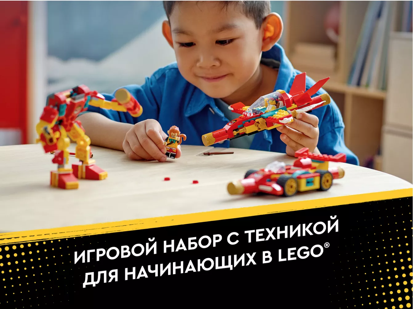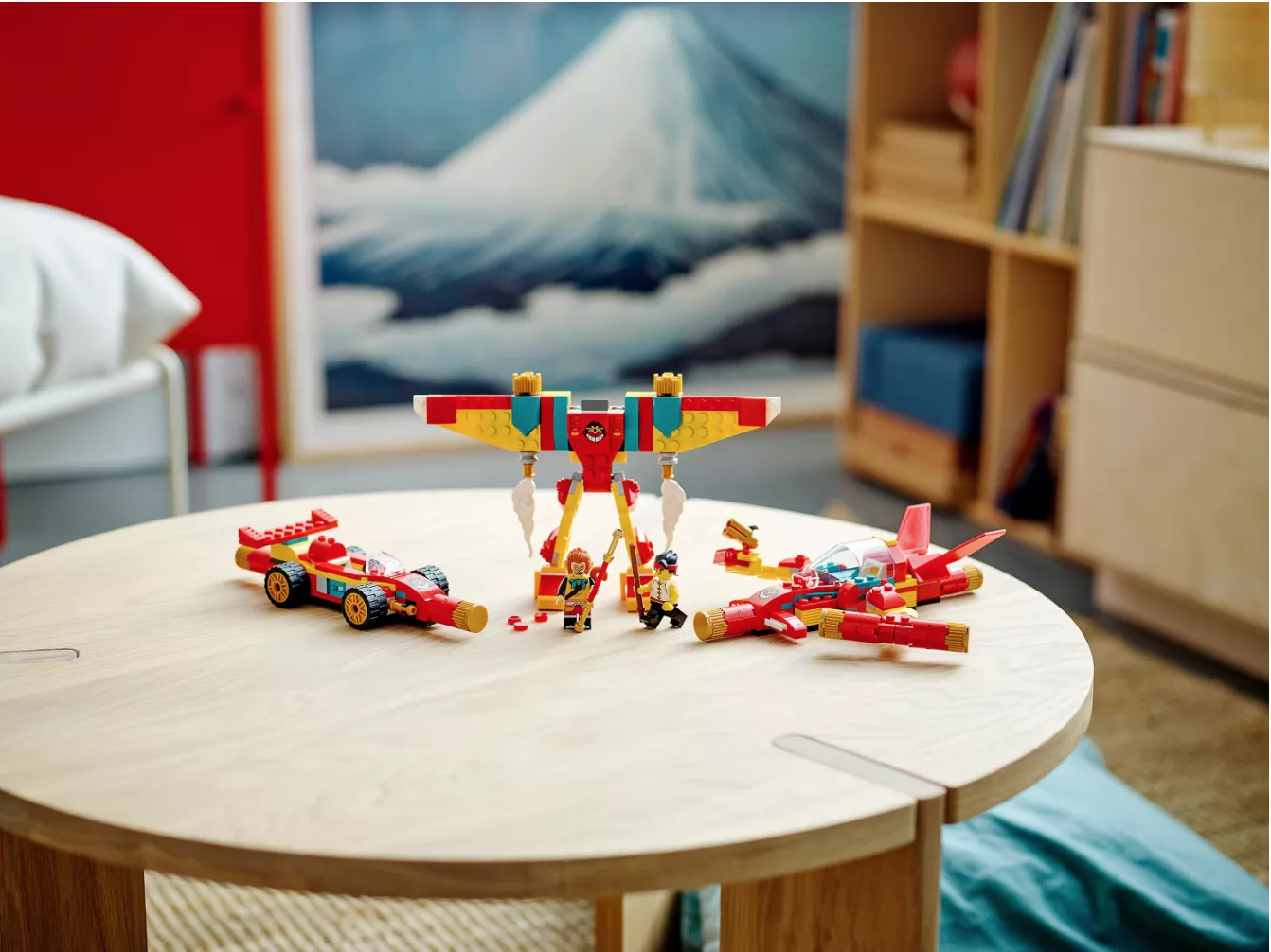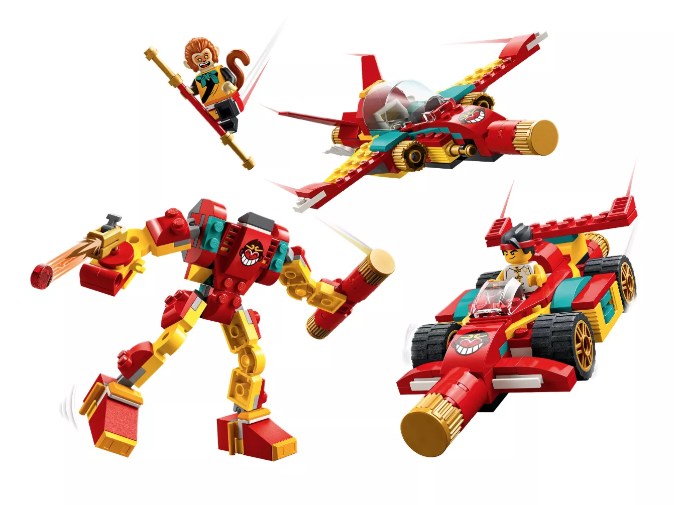 Набор LEGO 80030 «Создания с посохом обезьянки» — это набор из 309 деталей, включающий 2 минифигурки обезьянки, выпущенный в 2022 году. В него входят сборный робот, гоночный автомобиль, самолет, минифигурка обезьянки в тренировочном костюме и Царь обезьян с Золотым посохом. Детали можно комбинировать для создания уникальных моделей.