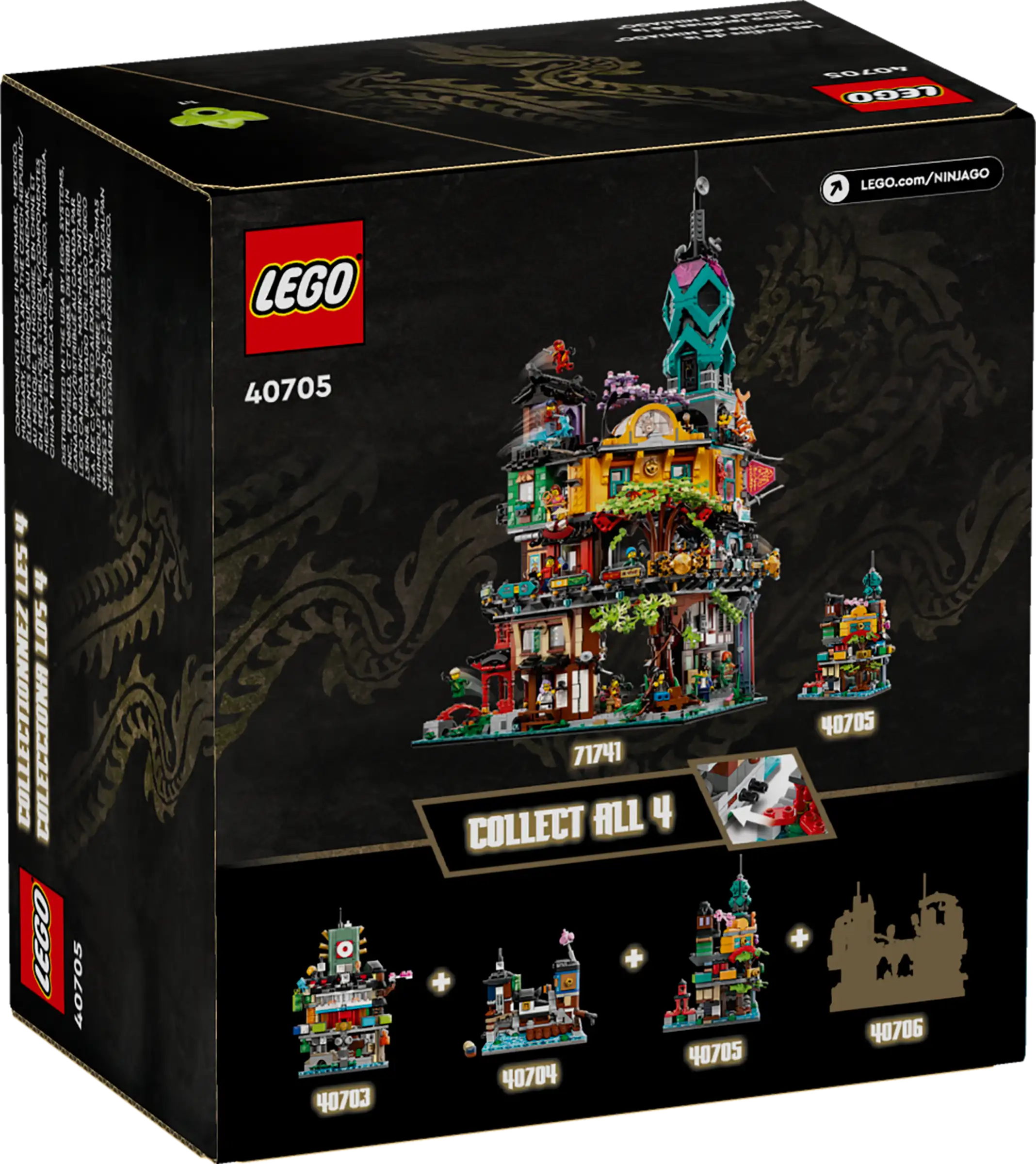 Набор LEGO 40705 Micro Ninjago Gardens — это рекламный набор Ninjago из 376 деталей, выпущенный в 2024 году. Это уменьшенная версия более крупной модели 71741 NINJAGO City Gardens. В набор входят магазин мороженого, лапшичная Чена, ломбард Ронина и Музей истории NINJAGO. Набор был доступен в качестве награды для участников программы Insiders в июне 2024 года.
