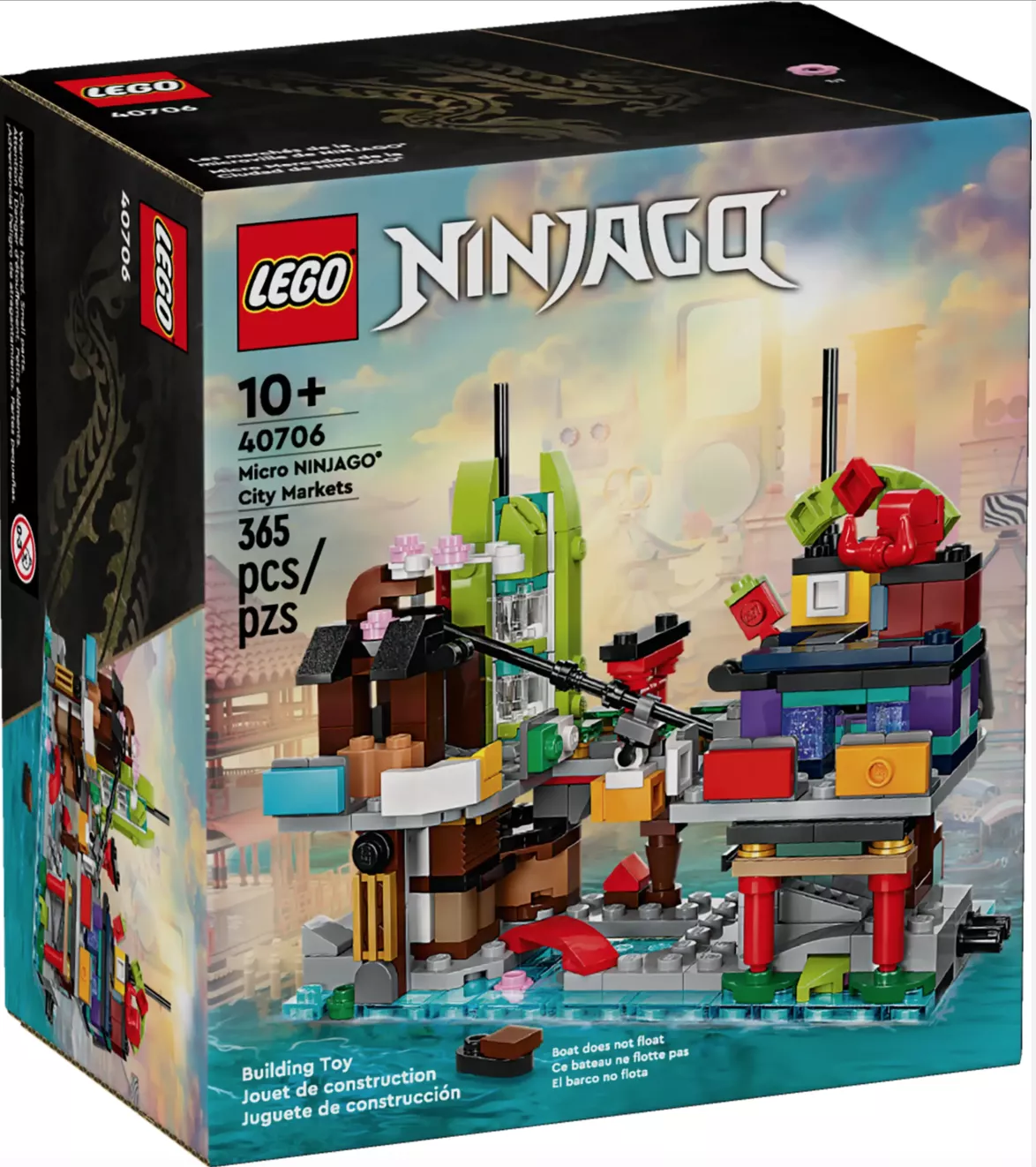 Набор LEGO 40706 «Микро-рынки города Ниндзяго» — это рекламный набор Ninjago из 365 деталей, выпущенный в 2024 году. Он представляет собой мини-версию набора 71799 «Рынки города Ниндзяго» и был доступен в качестве награды для участников программы Insiders Reward (2300 баллов) в июле 2024 года. Этот модульный набор является четвертым в серии, которую можно соединить с тремя другими микро-наборами, чтобы собрать небольшой город Ниндзяго.