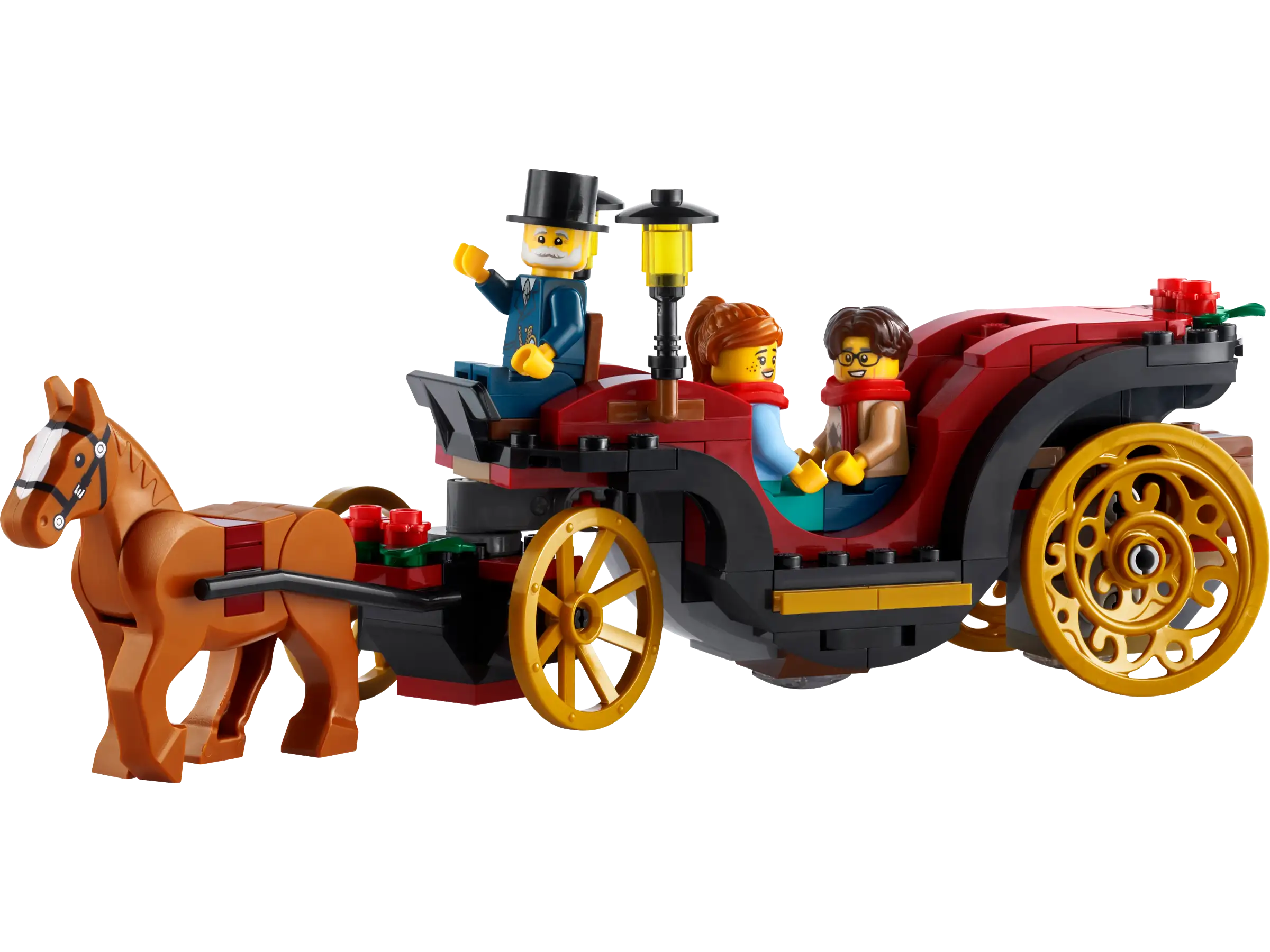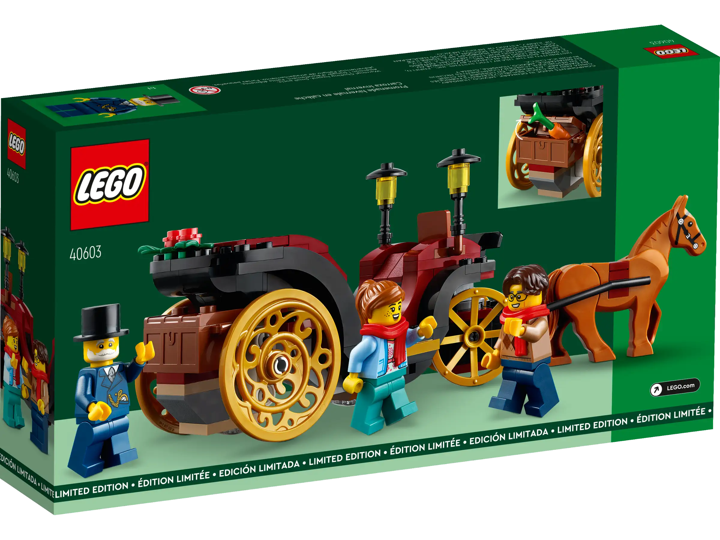 Набор LEGO 40603 «Зимняя поездка на карете» — это сезонный рекламный набор из 153 деталей с 3 минифигурками, выпущенный в 2023 году. Также известный как «Рождественская карета», он был бесплатным подарком с 1 по 14 декабря для тех, кто совершил покупку на сумму от 150 долларов. В набор входит карета с темно-красным салоном, золотыми колесами, багажником для хранения, а также фигурки возницы, двух пассажиров и лошади.