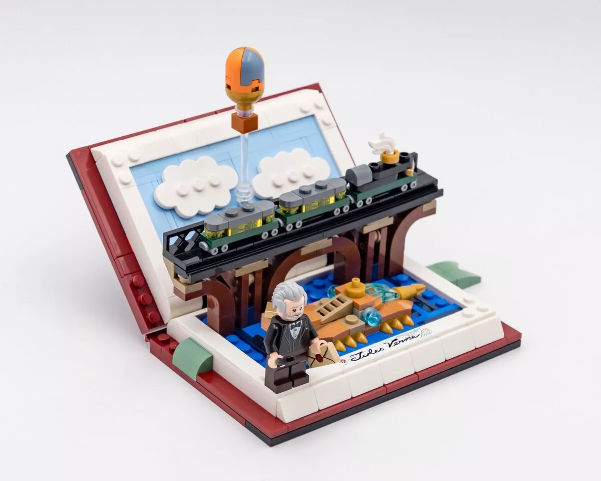 Набор LEGO 40690 «Дань уважения книгам Жюля Верна» — это рекламный набор из 351 детали с 1 минифигуркой, выпущенный в 2024 году. Этот набор отдает дань уважения произведениям Жюля Верна и включает в себя микромасштабную диораму с открытой книгой, мостом из кубиков с черным поездом (известным как «Поезд времени»), воздушным шаром и золотой подводной лодкой «Наутилус». Он содержит многочисленные отсылки к рассказам Верна и включает в себя эксклюзивную минифигурку Жюля Верна.