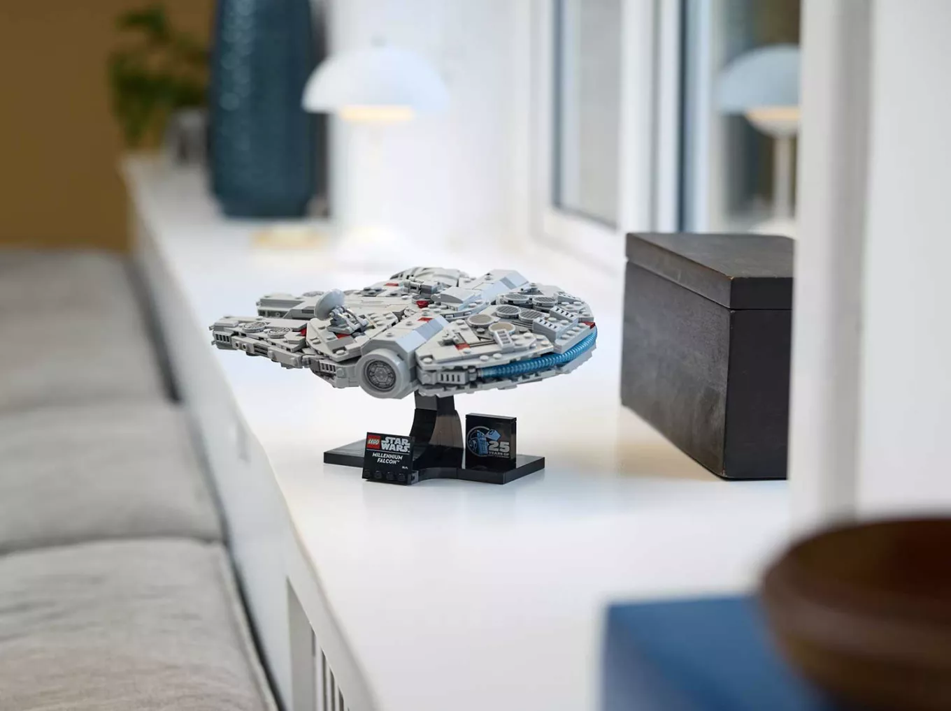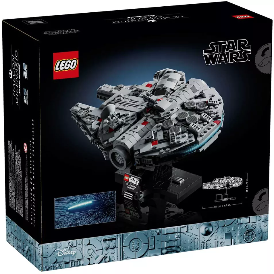 Набор LEGO 75375 «Тысячелетний сокол» — это коллекционный набор по мотивам «Звездных войн», выпущенный в 2024 году и содержащий 921 деталь. Это уменьшенная копия «Тысячелетнего сокола» из фильма «Звездные войны: Новая надежда». Модель включает в себя сборную подставку, которая позволяет расположить корабль под углом, имитирующим полет, и табличку с названием. В комплект также входит специальный кубик LEGO Star Wars, посвященный 25-летию серии (2024 год).