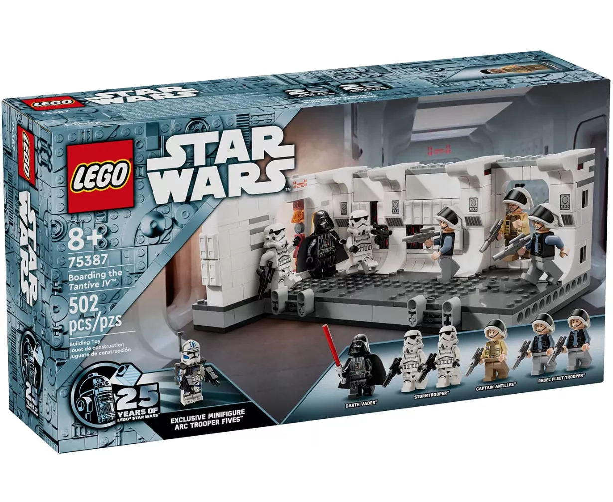 Набор LEGO 75387 «Абордаж «Тантив IV»» — это набор по вселенной «Звездных войн», выпущенный в 2024 году, содержащий 502 детали и 7 минифигурок: Дарта Вейдера, двух штурмовиков, капитана Антиллеса, двух повстанческих солдат и эксклюзивную минифигурку ARC-штурмовика Файвса, выпущенную к 25-летию фильма. Набор воссоздает начальную сцену фильма «Звездные войны: Новая надежда», изображающую имперский абордаж «Тантив IV». Он включает в себя детализированный коридор с бронированными дверями и элементы для воссоздания битвы между повстанческими силами и имперскими войсками.