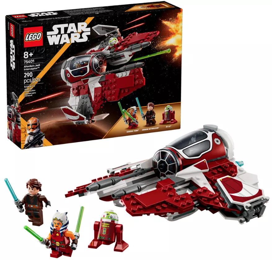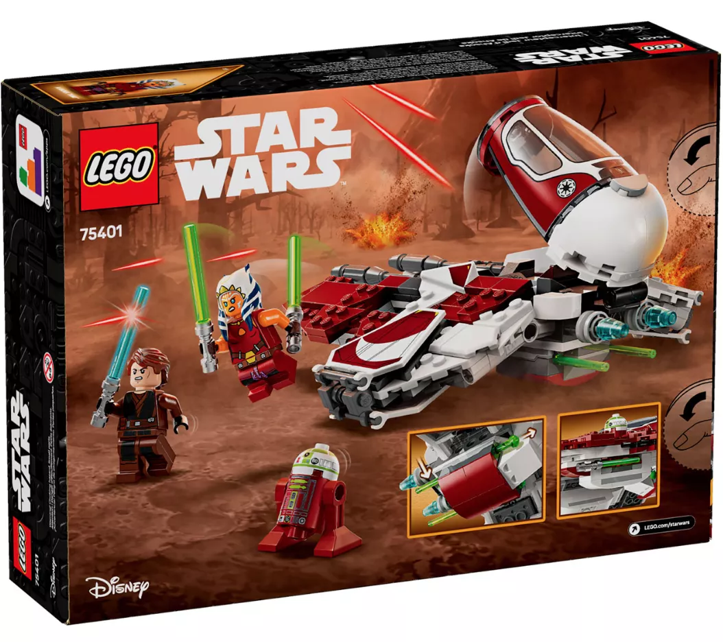 Набор LEGO 75401 «Джедайский истребитель Асоки» — это набор из 290 деталей по мотивам «Звездных войн» с 3 минифигурками, выпущенный в 2025 году. Он включает в себя собранный из кубиков джедайский истребитель с открывающейся кабиной, регулируемыми крыльями для различных режимов полета и двумя пружинными пушками. В набор входят минифигурки Асоки Тано и Энакина Скайуокера со световыми мечами, а также фигурка дроида R7-A7.
